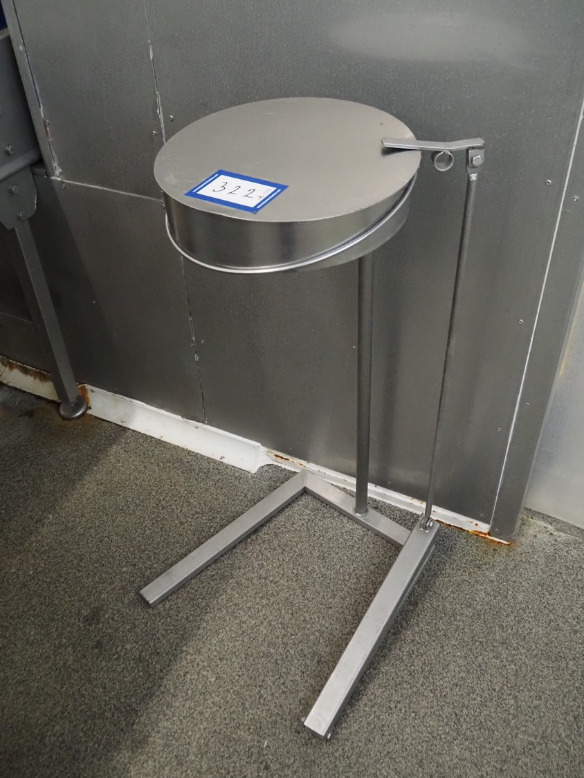 S/s waste bag holder, foot control, dimensions: 500 mm x 400 mm x 900 mm.