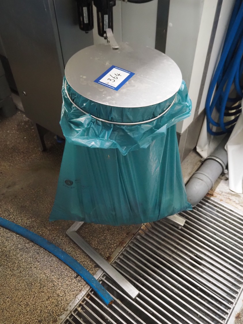 S/s waste bag holder, foot control, dimensions: 500 mm x 400 mm x 900 mm.