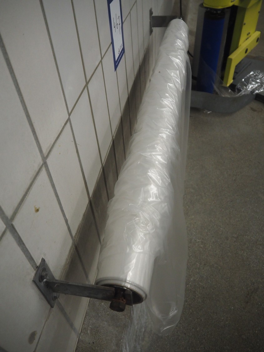 S/s wall mounted film roll holder, film width: 1220 mm, total dimensions: 1350 mm x 200 mm x 120 mm.