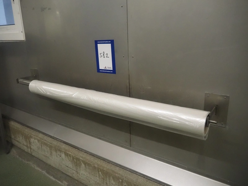 S/s wall mounted film roll holder, dimensions: 1520 mm x 180 mm x 150 mm. Including plastic film roll, width: 1200 mm.