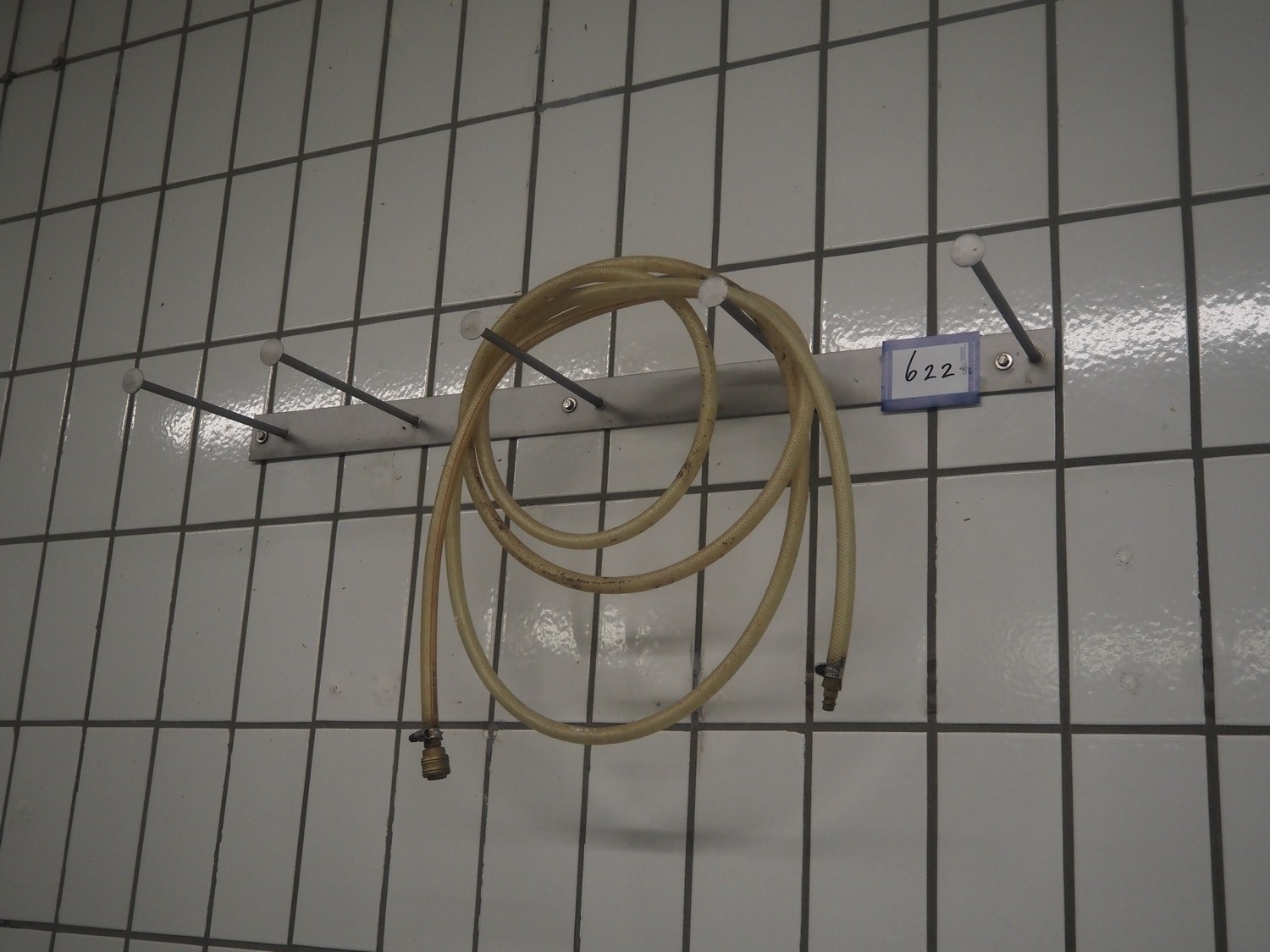 S/s wall mounted frame with 5 pegs, dimensions: 1000 mm x 260 mm x 60 mm.