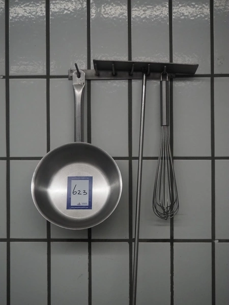 Kitchen inventory, consisting of: s/s pan, s/s whisk and s/s scraper.