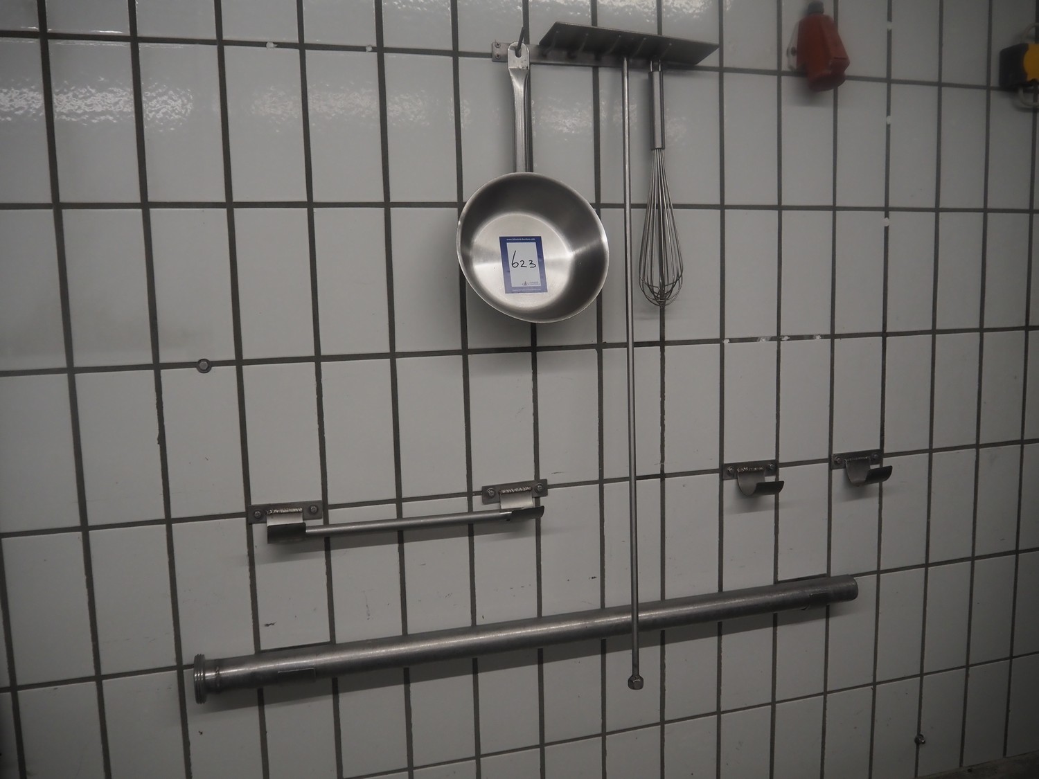 Kitchen inventory, consisting of: s/s pan, s/s whisk and s/s scraper.