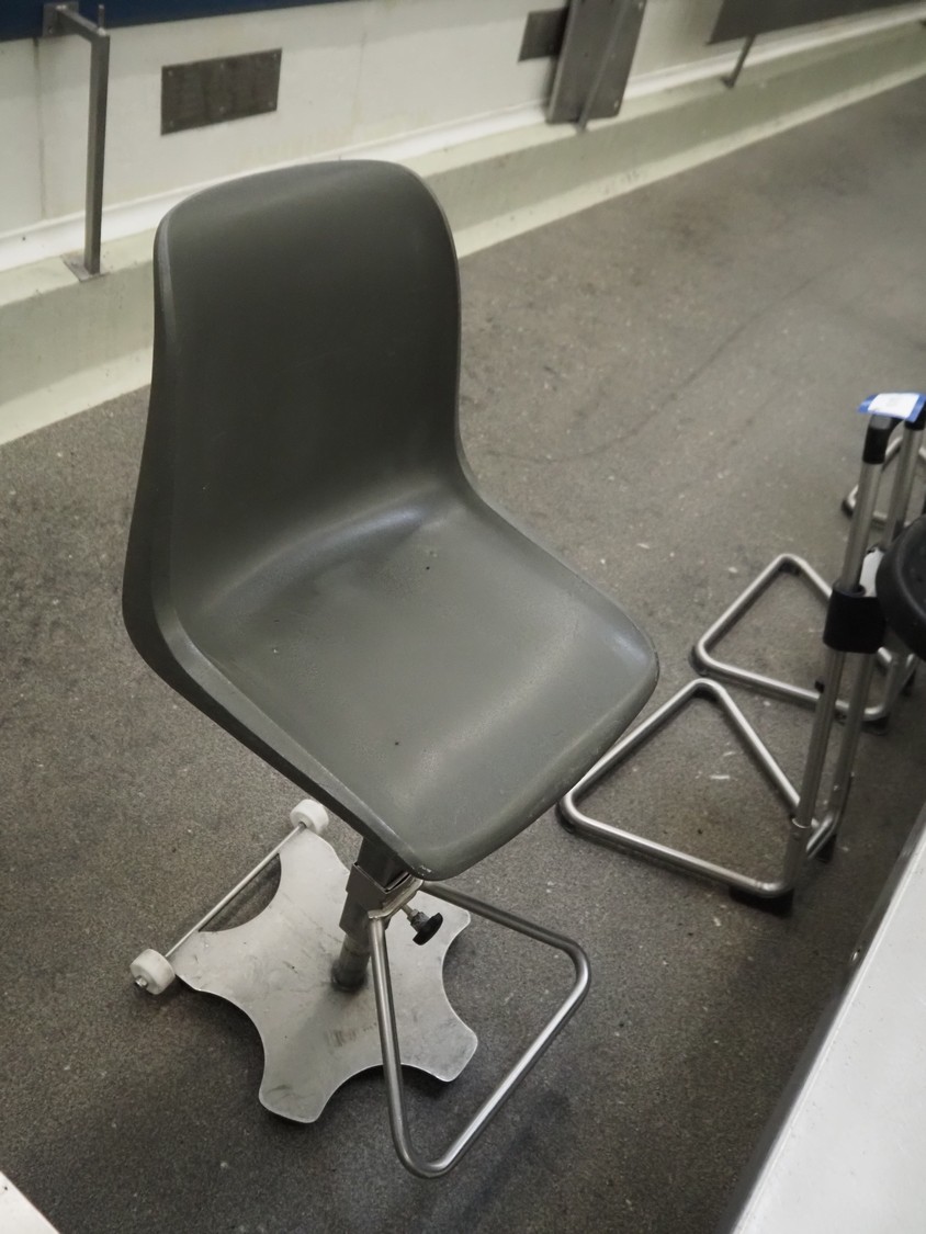 Chair on s/s frame, dimensions: 500 mm x 400 mm x 1150 mm.