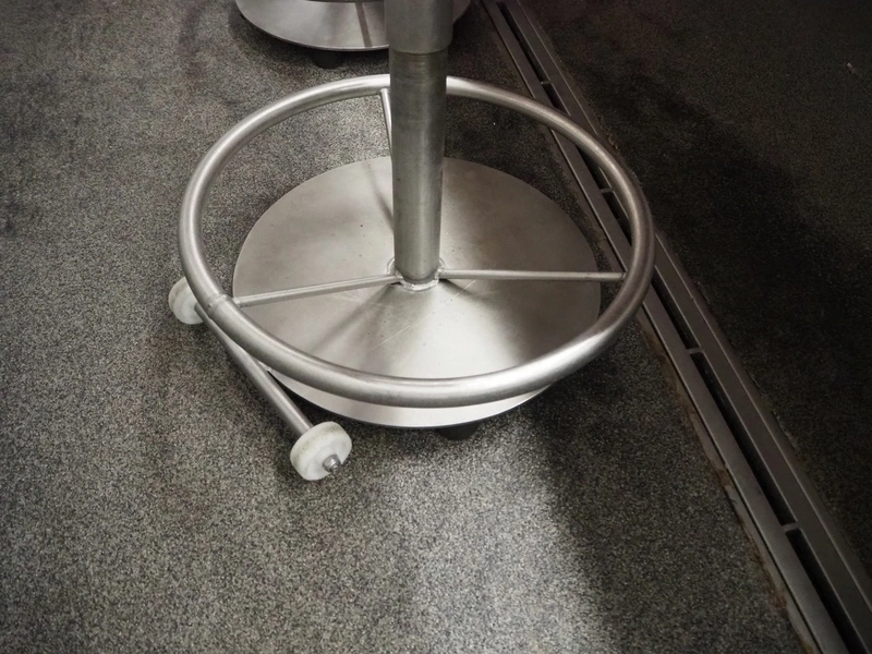 6 chairs on s/s frames, dimensions: (6x) 500 mm x 450 mm x 1150 mm.