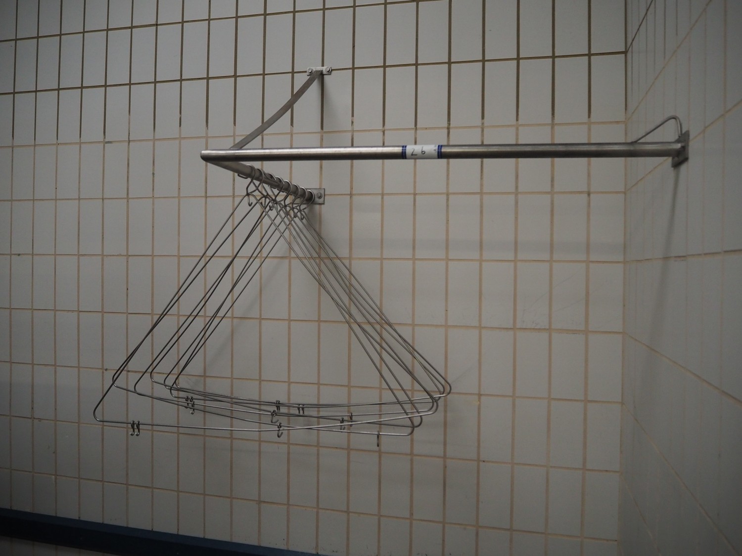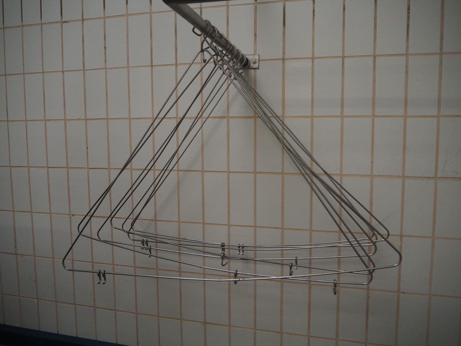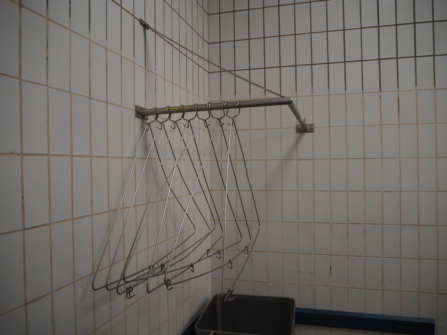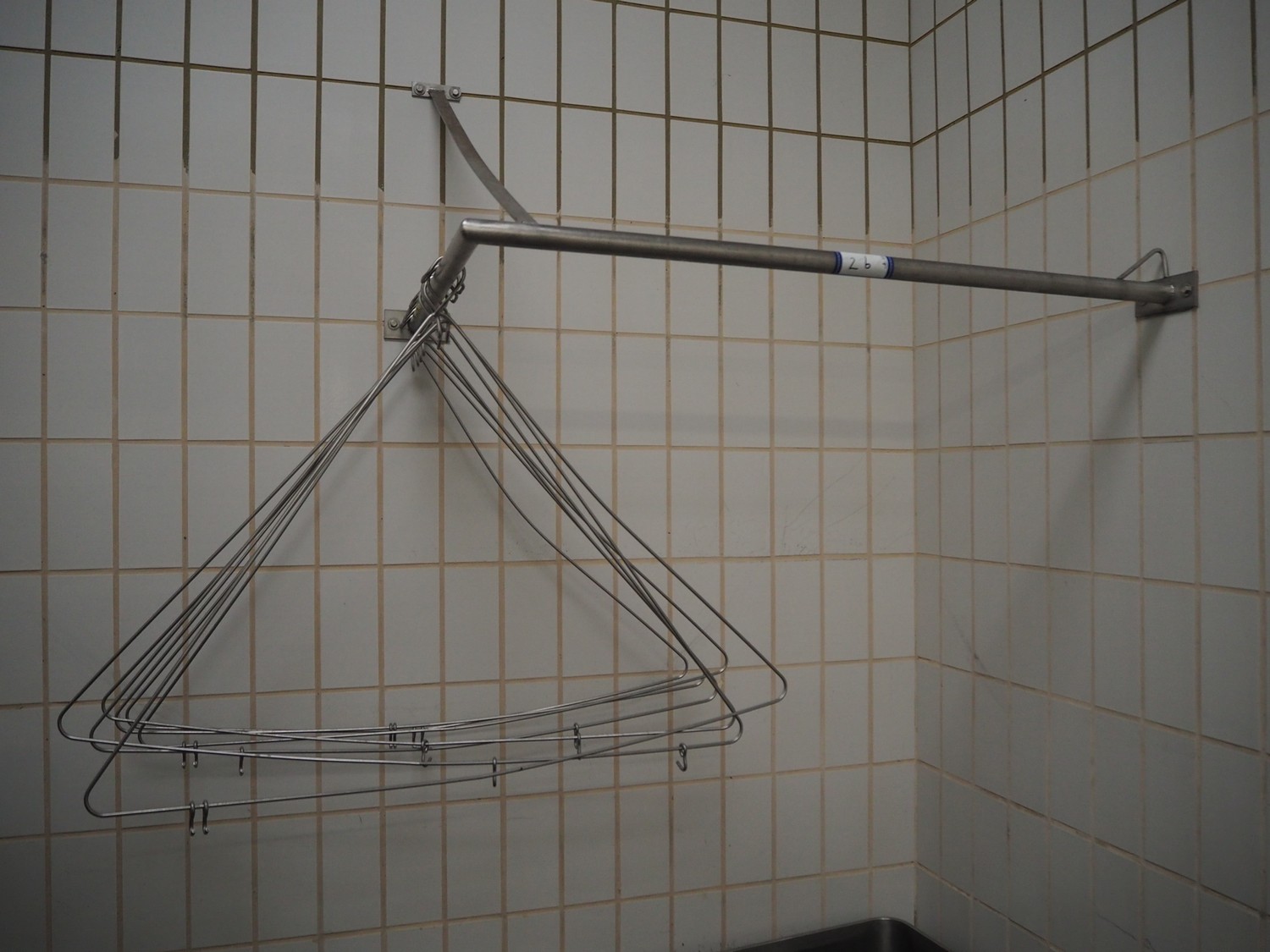 S/s wall mounted frame with s/s apron hangers, dimensions frame: 1200 mm x 800 mm, dimensions each hanger: 1100 mm x 750 mm.