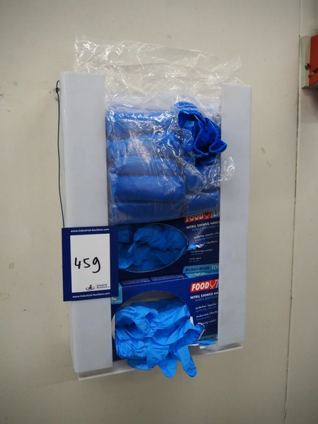 Plastic frame with gloves and caps, dimensions: 270 mm x 100 mm x 410 mm.