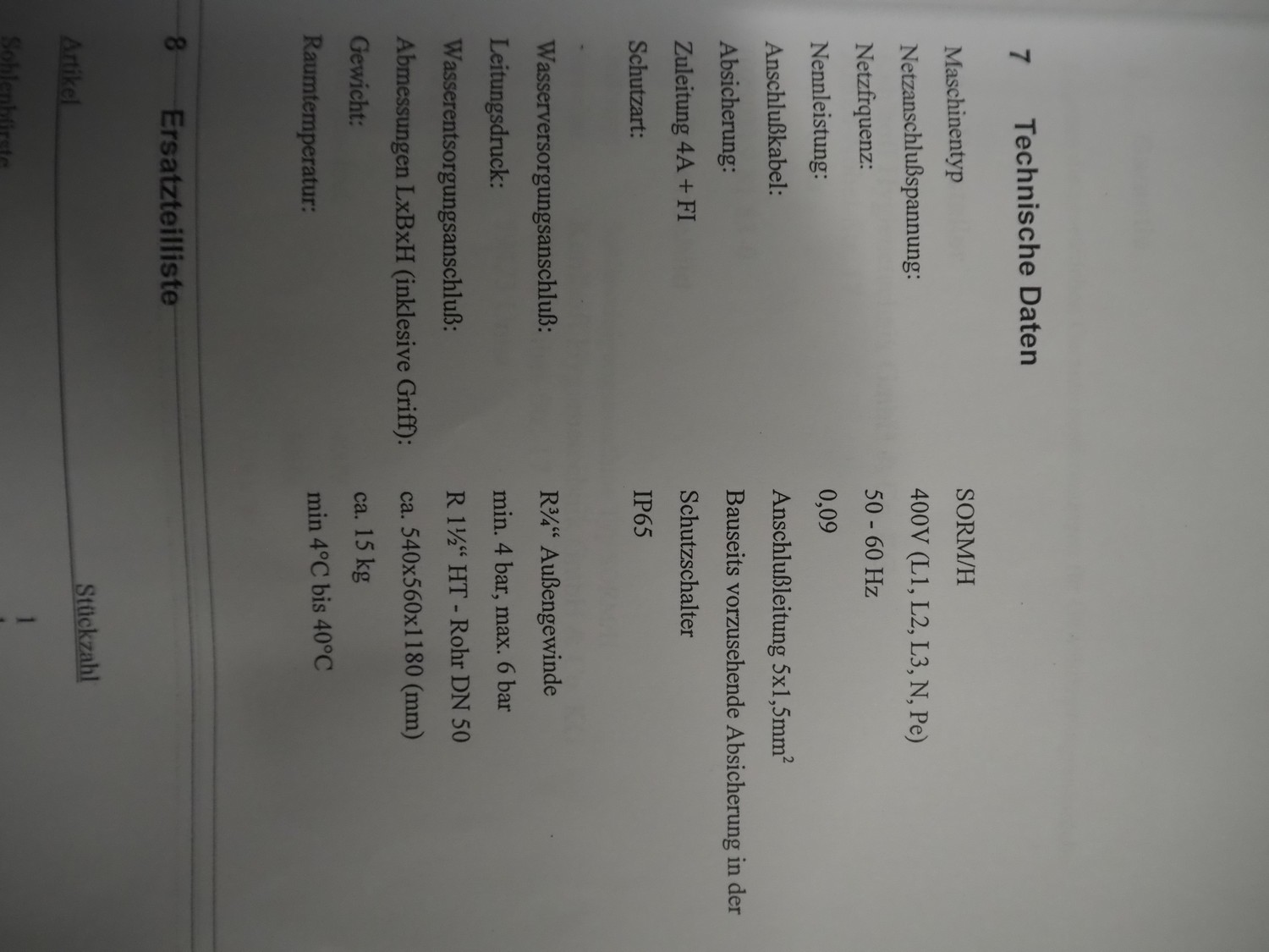 Kohlhoff sole cleaner, type: SORM/H, 400 V, 50/60 Hz, 65 Ip, minimum pressure: 4 bar, maximum pressure: 6 bar, brush length: 300 mm, total dimensions: 700 mm x 650 mm x 1120 mm.