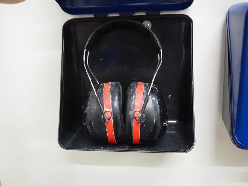 4 Denios plastic cabinets with 3 earmuffs, dimensions: (4x) 230 mm x 120 mm x 230 mm.