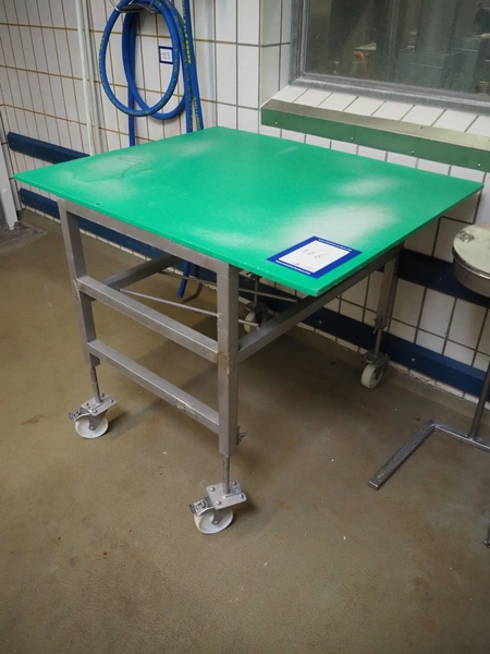 Mobile table, s/s frame, plastic worktop, dimensions: 1200 mm x 1000 mm x 1000 mm.