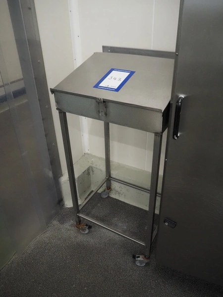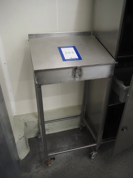 S/s mobile writing desk, dimensions: 610 mm x 550 mm x 1300 mm.