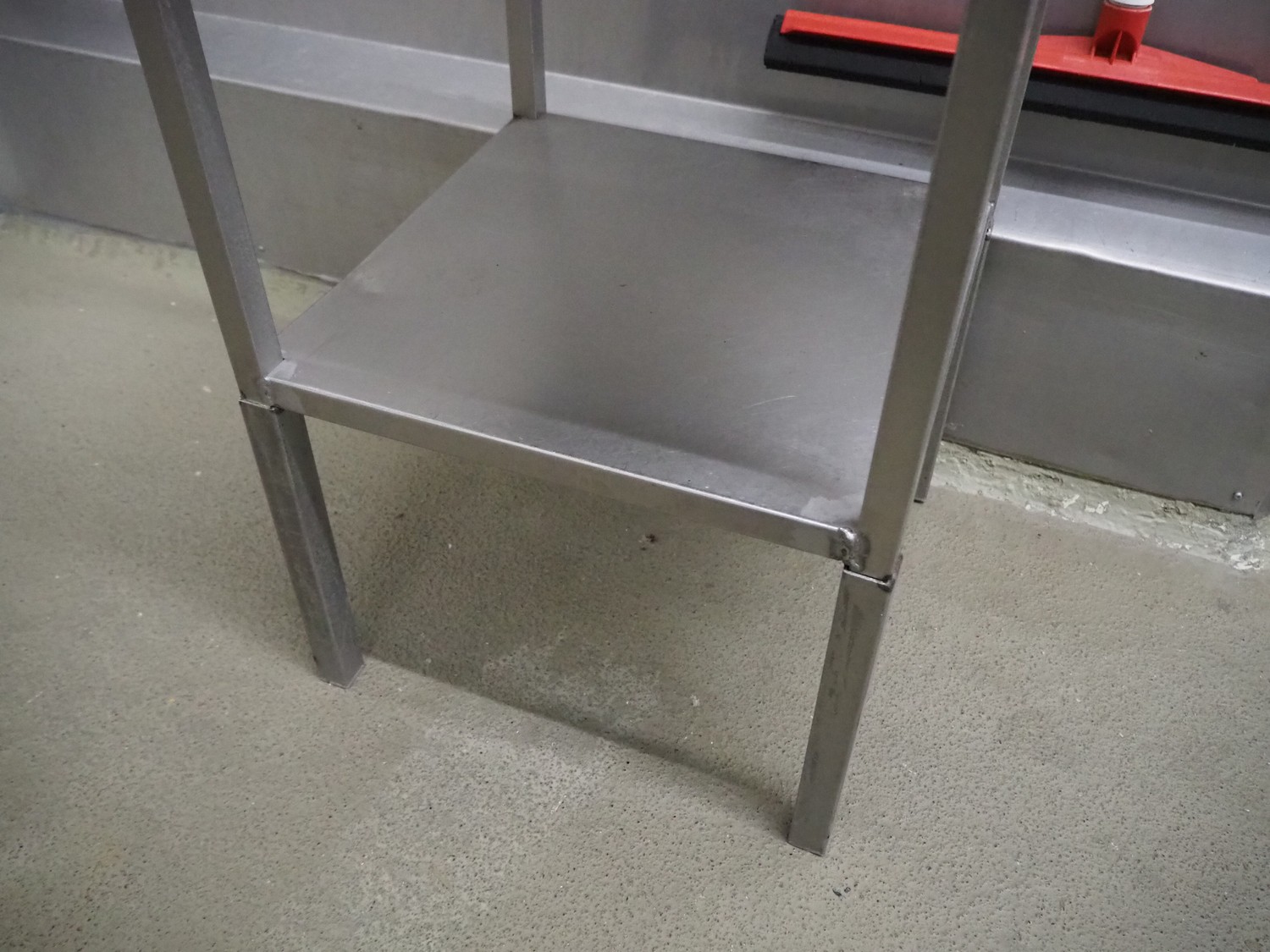 S/s table, 2 floors, dimensions: 450 mm x 450 mm x 700 mm.