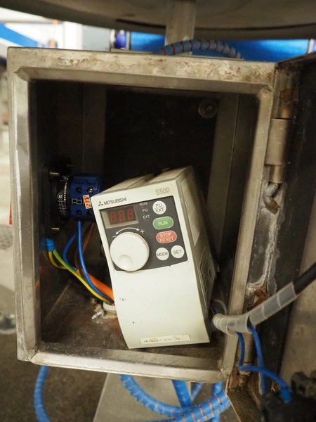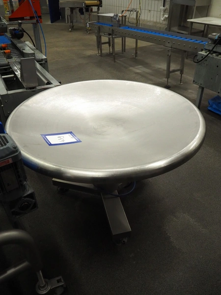 Joy Conveyor Co.,LTD s/s turning table, number: 10851 D, year of construction: 2010, 220 V, 50 Hz, 2 A, 0.37 kW, diameter table: 1200 mm, height table: 800 mm.