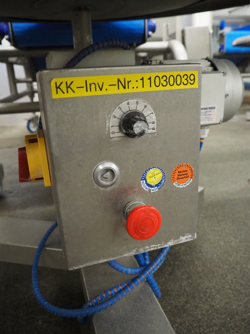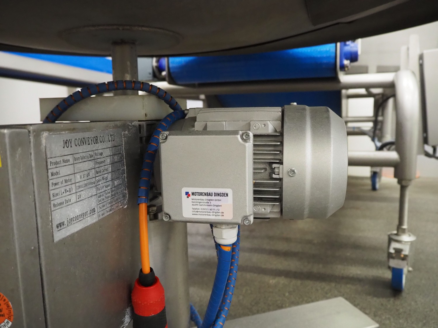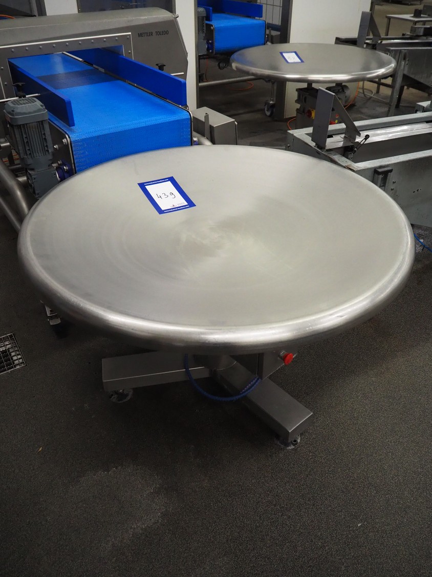 Joy Conveyor Co.,LTD s/s turning table, number: 10851 D, year of construction: 2010, 220 V, 50 Hz, 2 A, 0.37 kW, diameter table: 1200 mm, height table: 800 mm.