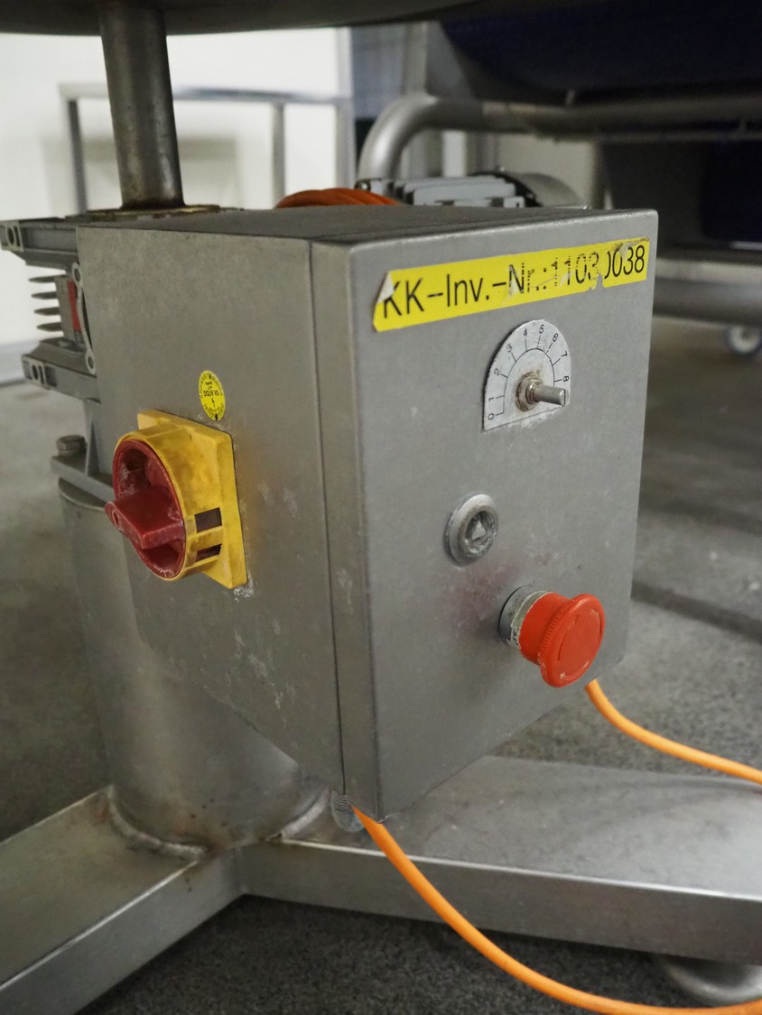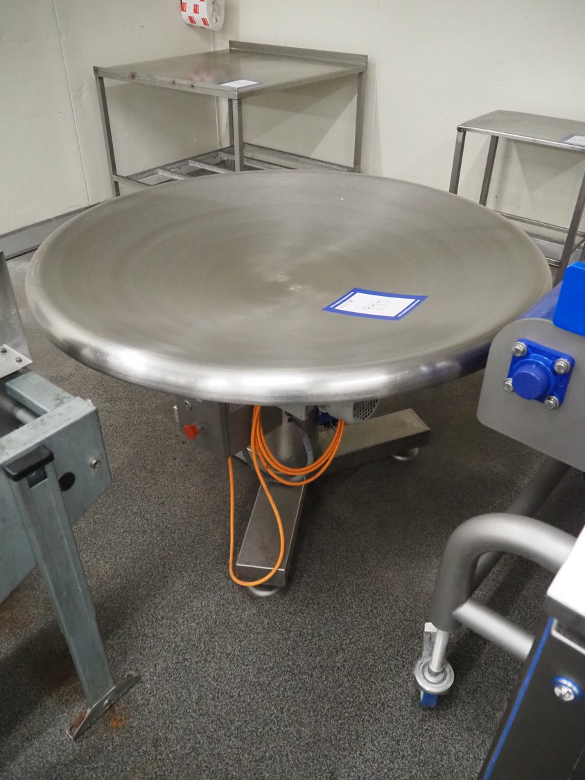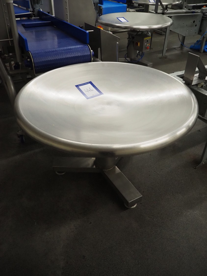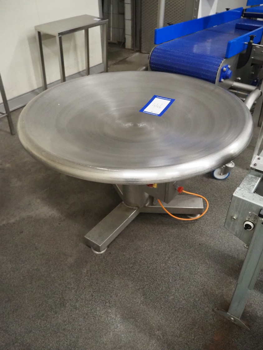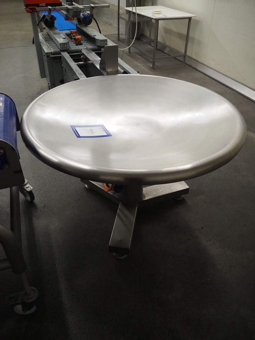 Joy Conveyor Co.,LTD s/s turning table, year of construction: 2010-11-18, 220 V, 50 Hz, 2 A, 0.37 kW, diameter table: 1200 mm, height table: 800 mm.
