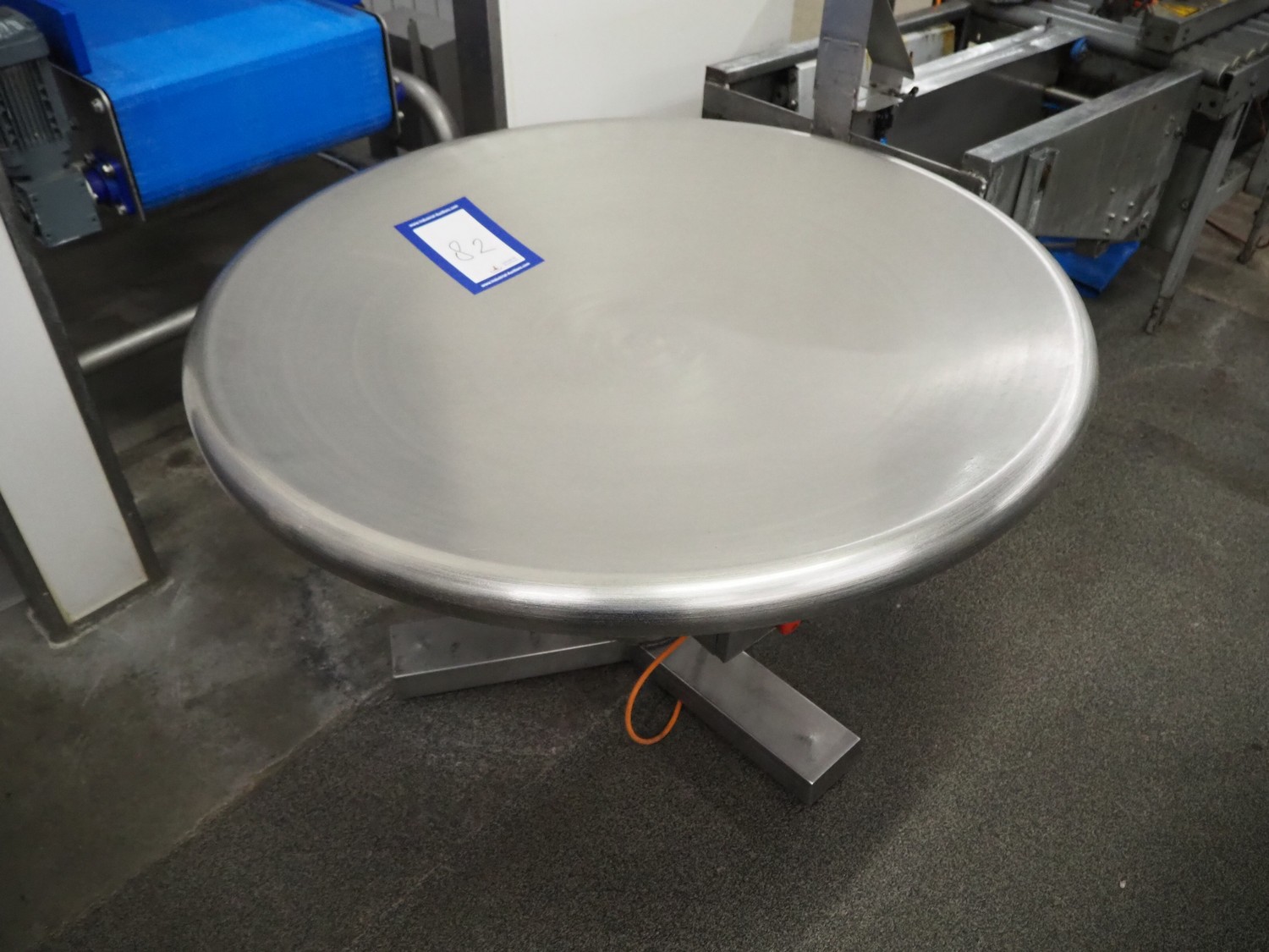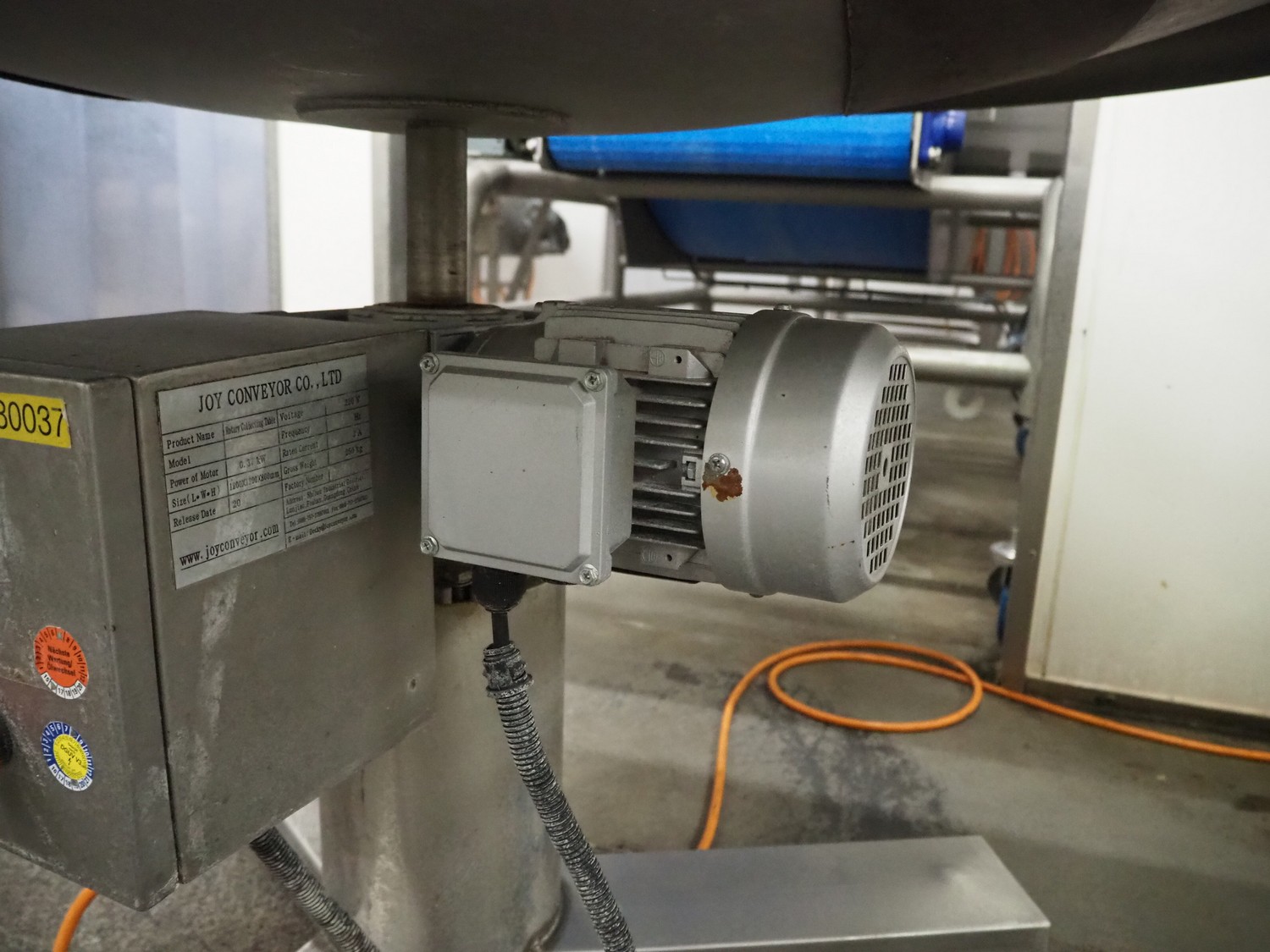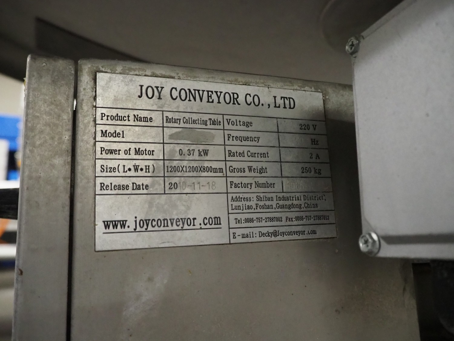 Joy Conveyor Co.,LTD s/s turning table, year of construction: 2018, 220 V, 50 Hz, 2 A, 0.37 kW, weight: 250 kg, diameter table: 1200 mm, height table: 750 mm.