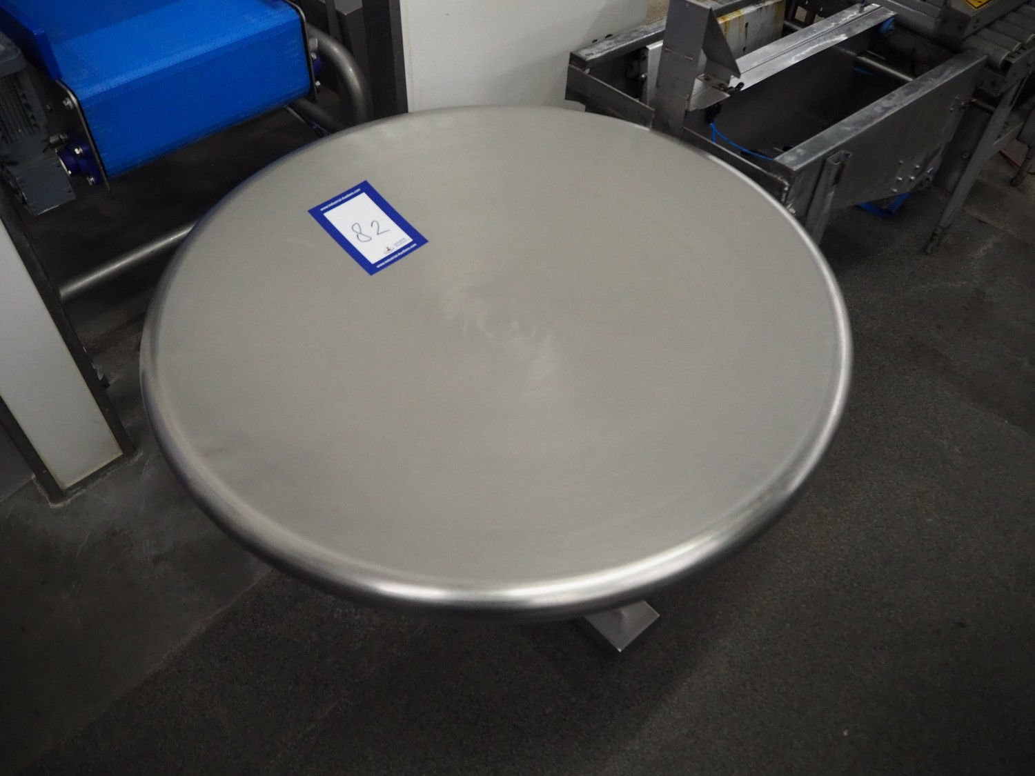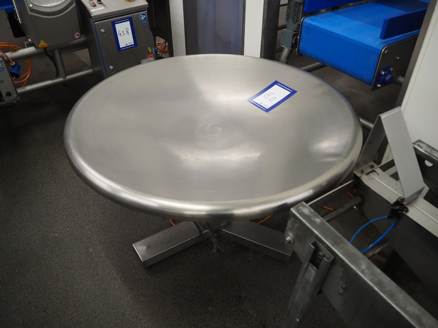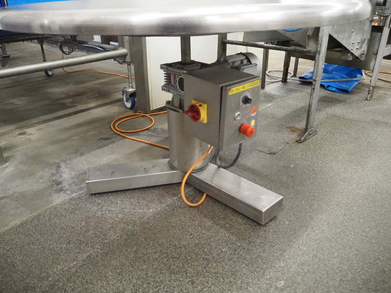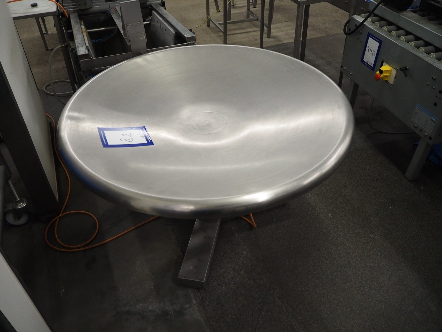 Joy Conveyor Co.,LTD s/s turning table, year of construction: 2018, 220 V, 50 Hz, 2 A, 0.37 kW, weight: 250 kg, diameter table: 1200 mm, height table: 750 mm.