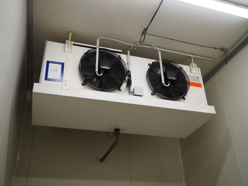 Güntner GmbH & Co. KG evaporator, type: S-GHT 040B/2B, number: 6447610, year of construction: 1994, maximum working pressure: 28 bar, maximum / minimum temperature: + 100°C / - 60 °C, volume: 17 liter, 2 fans, dimensions: 1100 mm x 600 mm x 700 mm.