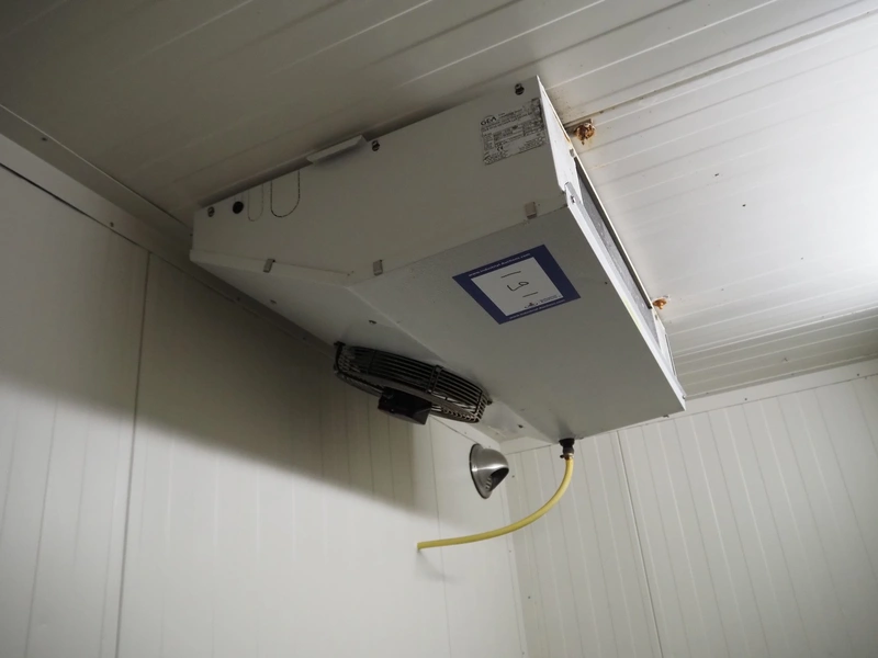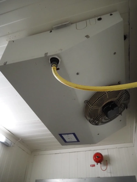 GEA Küba Kältetechnik GmbH evaporator, type: DEB 071D DECKEN-LUFTKÜHLER, fabrication number: 554280 / 0100 / 2001 / 7272134 / 1, 230 V, 1 Ph, 50/60 Hz, 73 W, volume: 2.8 liter, temperature range: 100/-40°C, dimensions: 1050 mm x 750 mm x 250 mm.