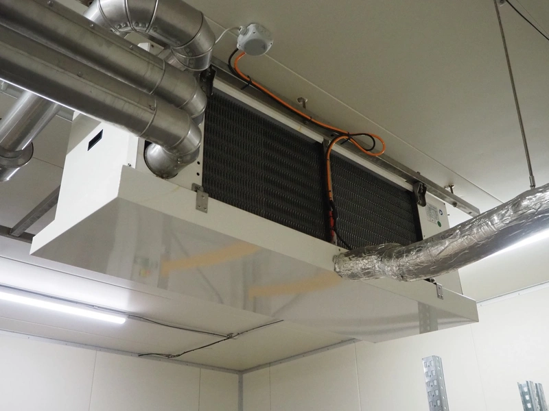Thermofin GmbH evaporator, type: TAN. 2-040-12-E-N-W5-12-HG LKS, year of construction: 11/2020, 230 V, 0.40/0.50 kW, temperature range: -25/60°C, 2 fans, dimensions: 1800 mm x 600 mm x 600 mm.