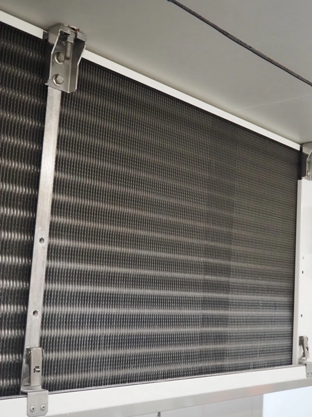 Thermofin GmbH evaporator, model: TGP.2-045-22-E-L-WE-07, unit number: 003, year of construction: 2022, 230 V, 0.52 kW, maximum working pressure: 15 bar, medium temperature allowable - propylene glycol: TS - 20/+60 (34%) 60˚C, empty weight: 220 kg, dimensions: 2400 mm x 2000 mm x 800 mm.