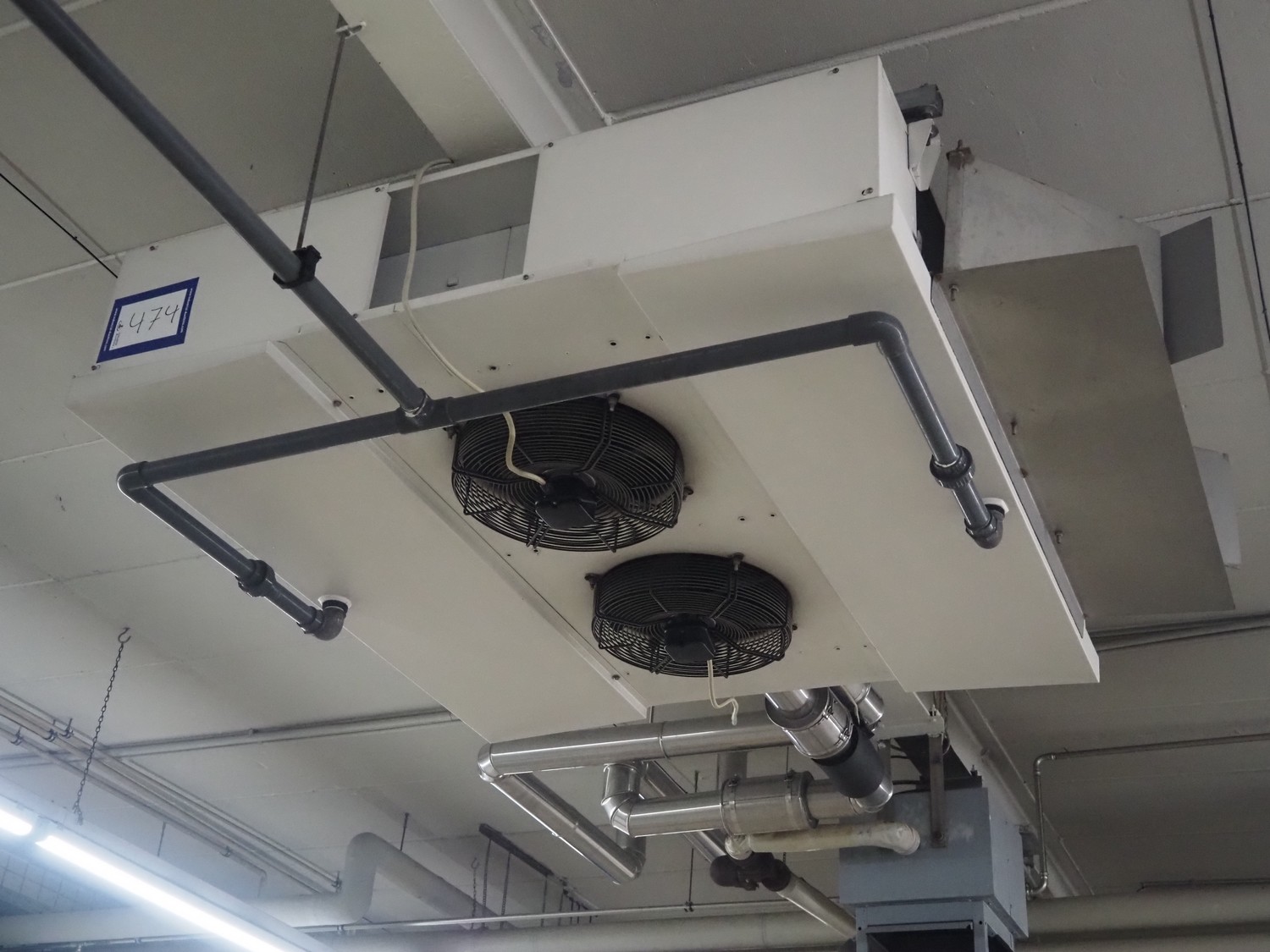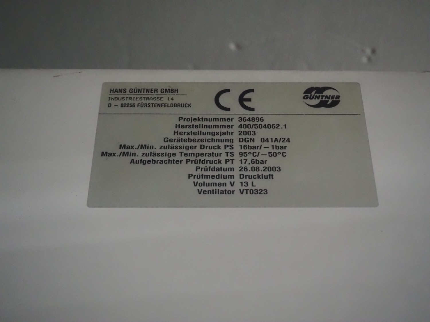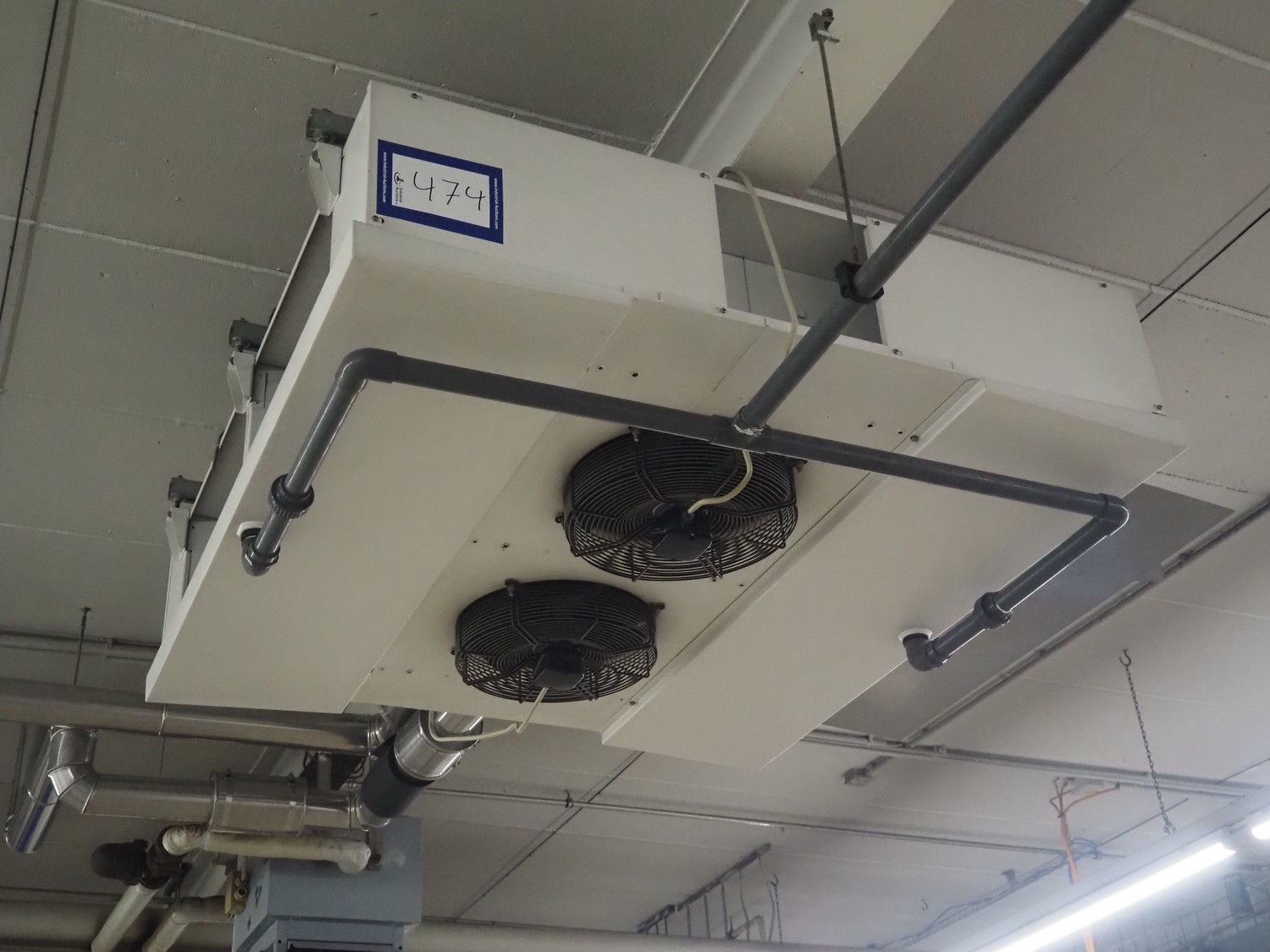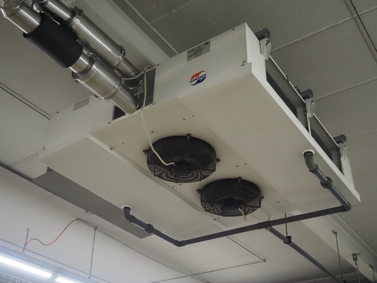 Güntner GmbH & Co. KG evaporator, type: DGN 041A/24, number: 400/504062.1, year of construction: 2003, maximum pressure: 16 bar, minimum pressure: -1 bar, maximum temperature: 95°C, minimum temperature: -50°C, volume: 13 liter, 2 fans, fan type: VT0323, dimensions: 1900 mm x 1800 mm x 500 mm.