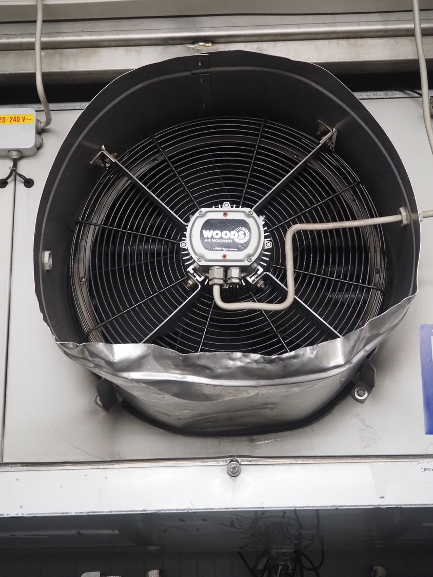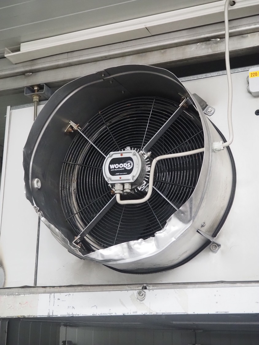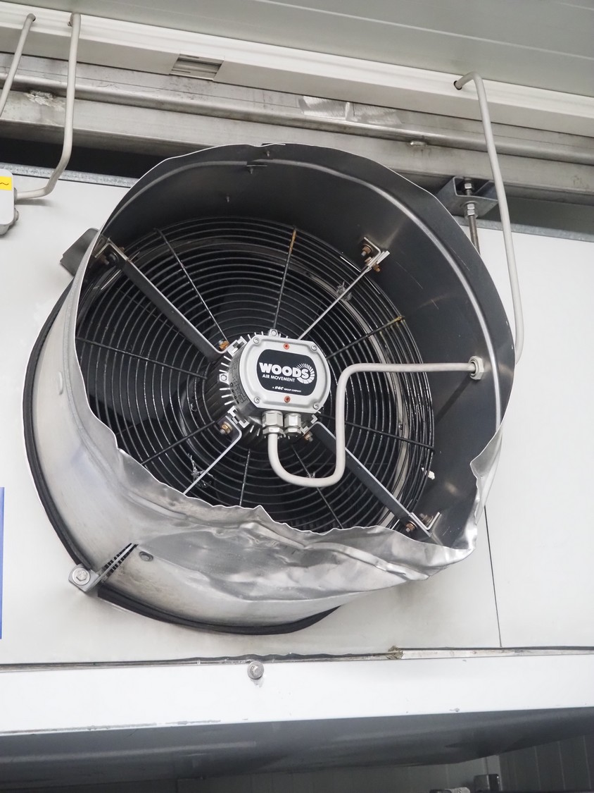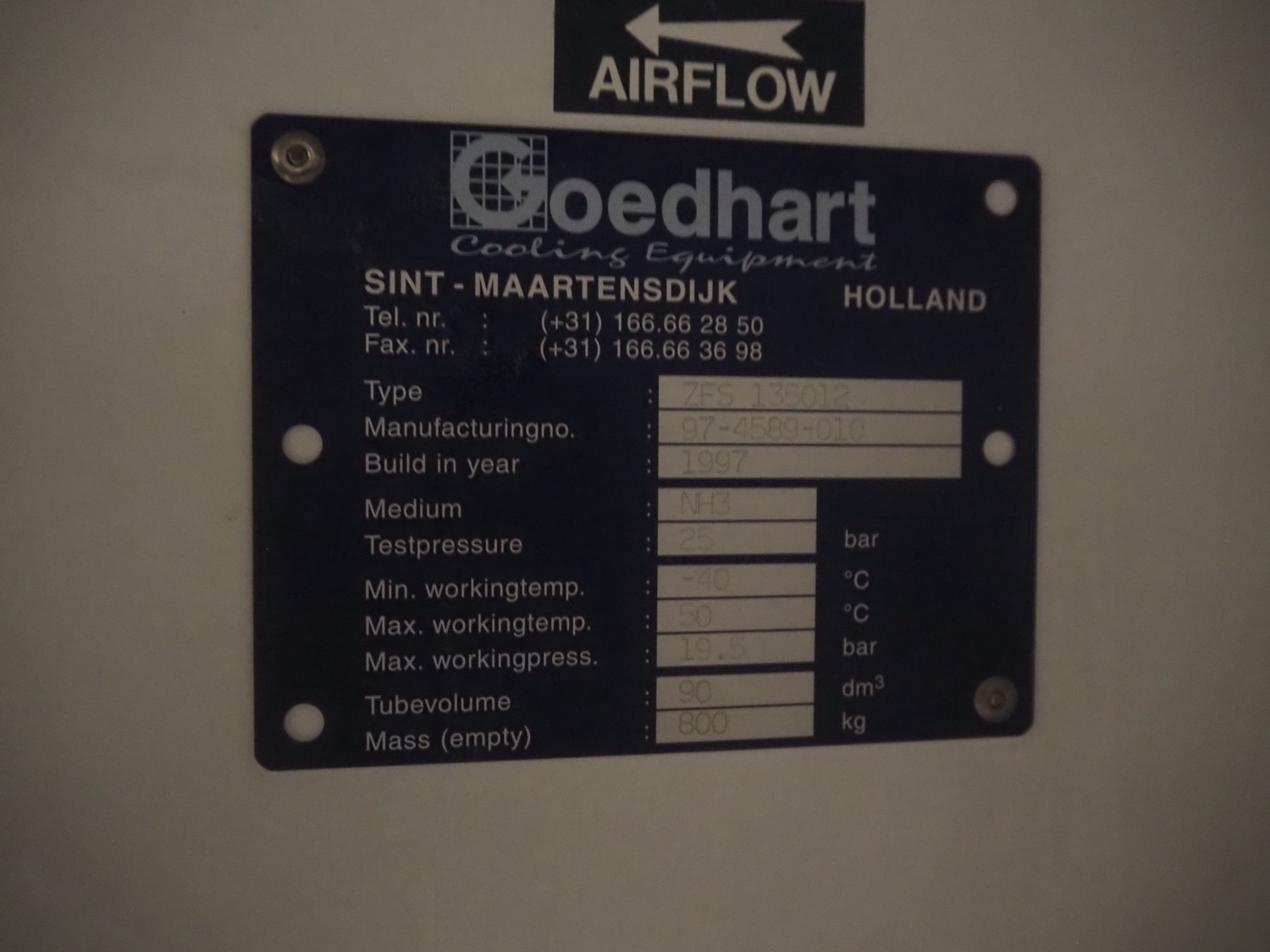 Goedhart evaporator, type: ZFS 135012, number: 97-4589-010, year of construction: 1997, refrigerant: NH3, maximum temperature: 50°C, minimum temperature: -40°C, tube volume: 90 dm³, 3 fans, dimensions: 2950 mm x 1200 mm x 780 mm.