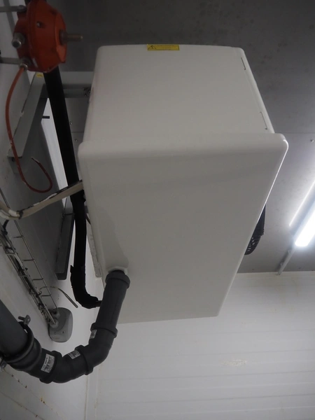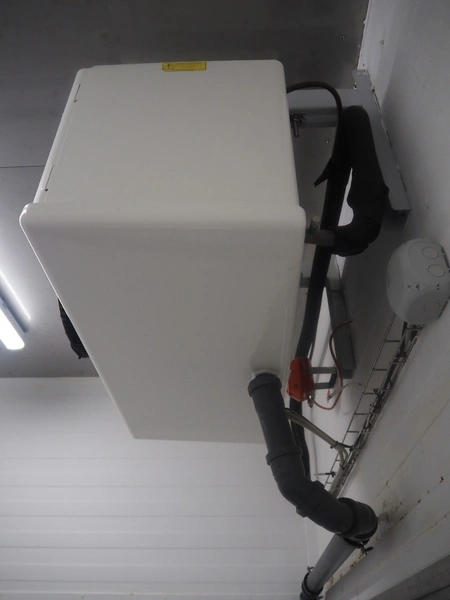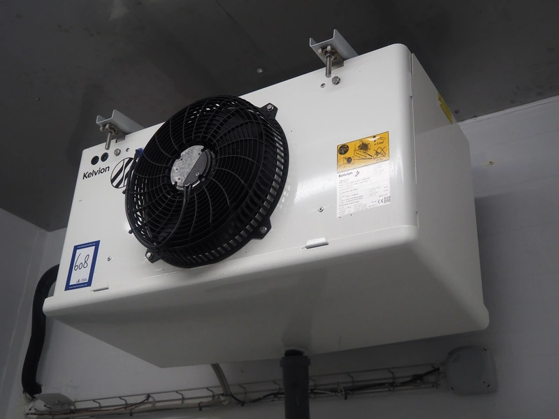 Kelvion evaporator, 1 fan, type/model: KSC-301-3RE-HX32-1, number: 4661.30-31.P, year of construction: 2021, 230 V, 1 Ph, 50/60 Hz, 1.6 kW, volume: 1.8 liter, dimensions: 800 mm x 450 mm x 400 mm.