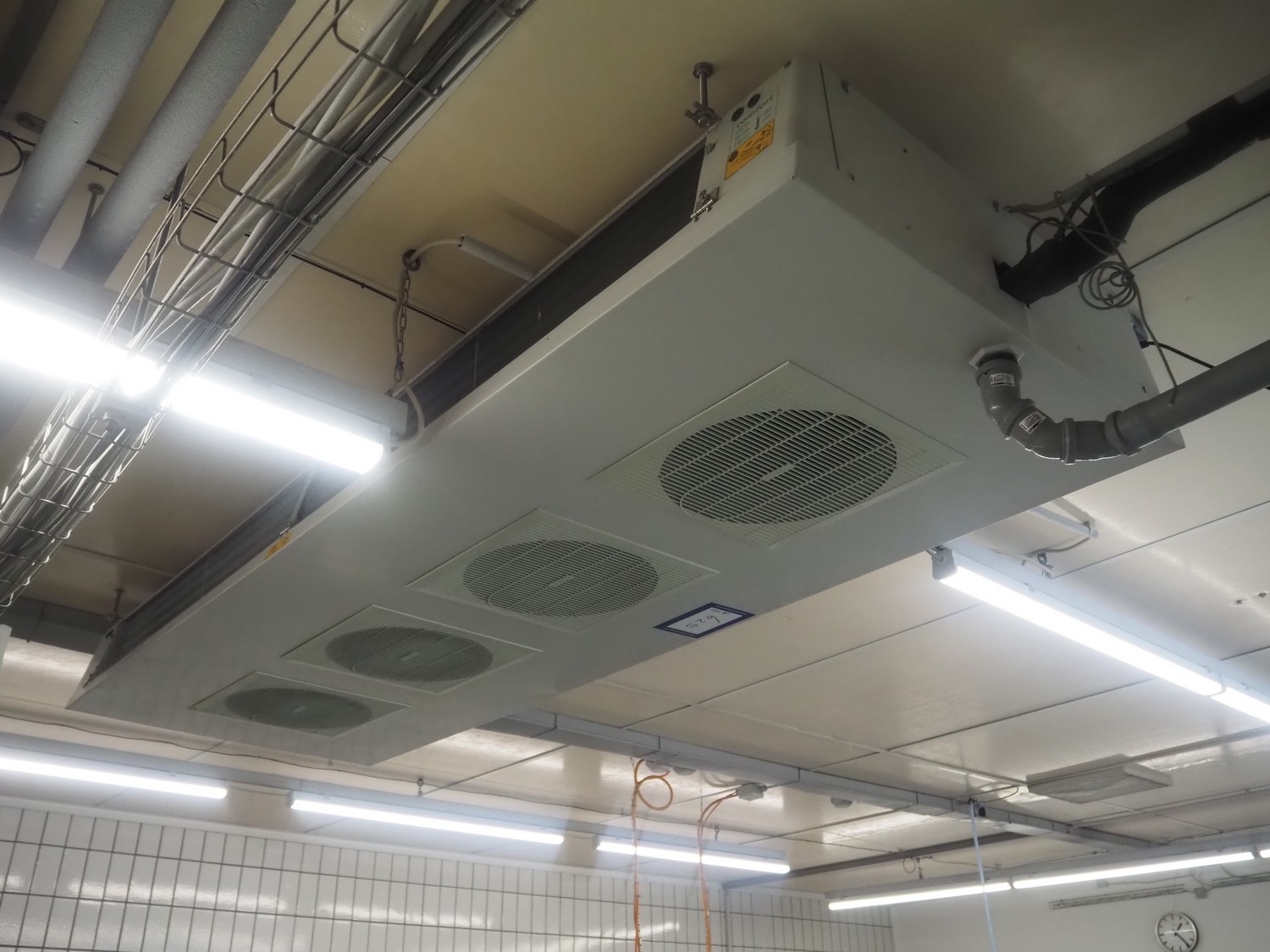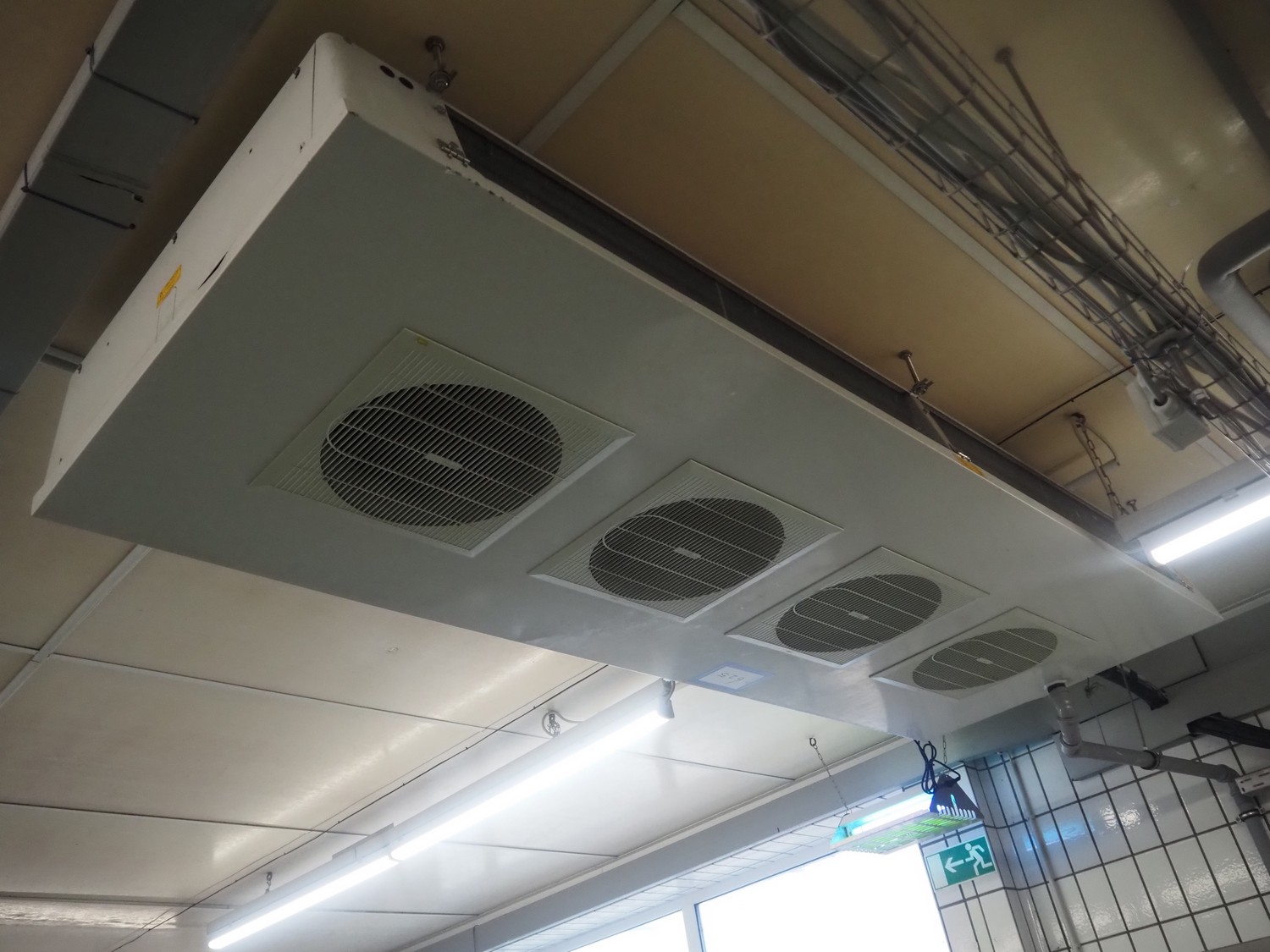 GEA Küba Kältetechnik GmbH evaporator, 4 fans, type/model: DPA 044 DECKEN-LUFTK COMFORT, article number: 2124.044, year of construction: 2002, 230 V, 1 Ph, 50 Hz, volume: 14.60 liter, dimensions: 2600 mm x 900 mm x 250 mm.