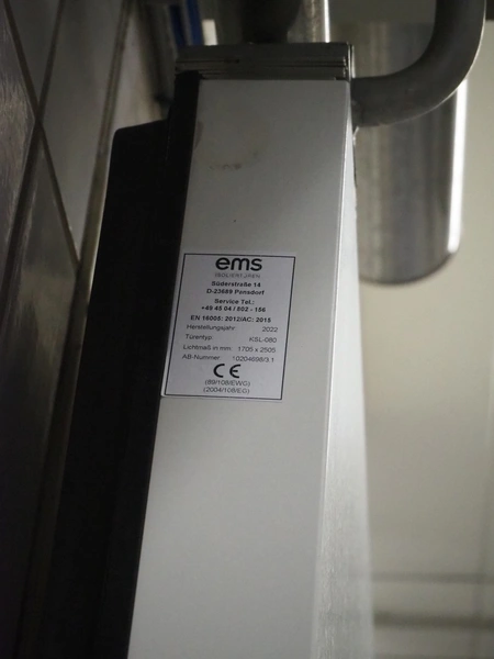 EMS refrigerated sliding door, type: KSL-080, number: 10204698/3.1, year of construction: 2022, thickness door: 80 mm, dimensions door: 1705 mm x 2505 mm, length rails: 3000 mm.