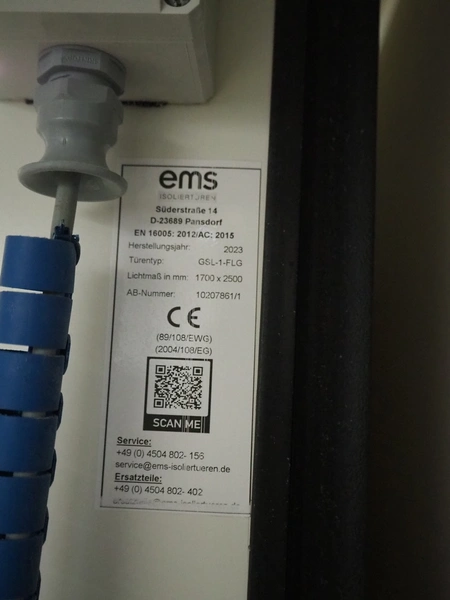 EMS refrigerated sliding door, type: GSL-1-FLG, number: 10207861/1, year of construction: 2023, thickness door: 120 mm, dimensions door: 1700 mm x 2500 mm, length rails: 3000 mm.