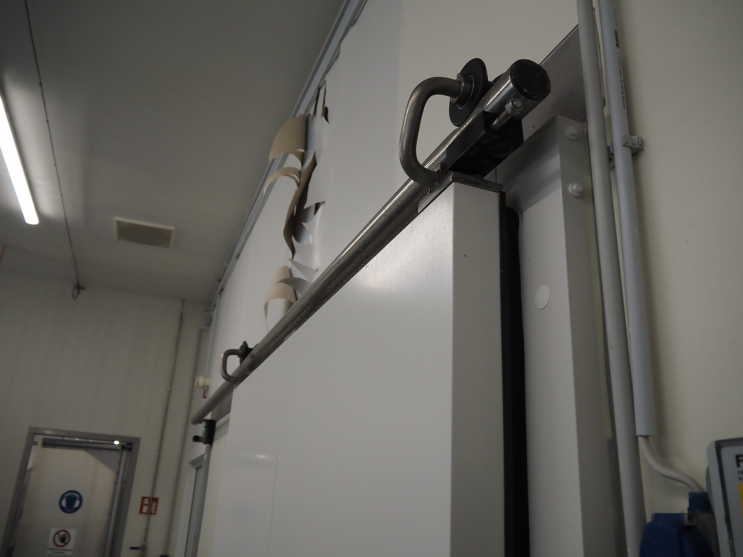 EMS refrigerated sliding door, thickness door: 80 mm, dimensions door: 1200 mm x 2580 mm, length rails: 3850 mm.