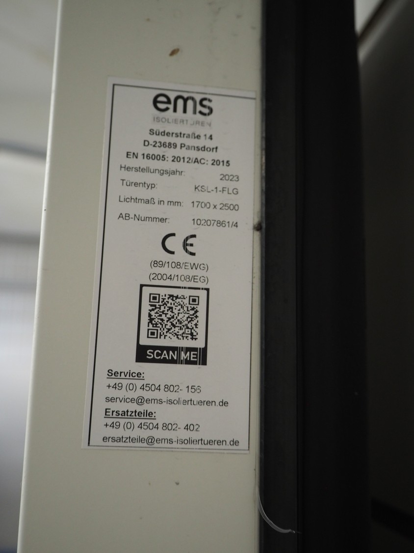 EMS refrigerated sliding door, type: KSL-1-FLG, number: 10207861/4, year of construction: 2023, thickness door: 80 mm, dimensions door: 1700 mm x 2500 mm, length rails: 3000 mm.