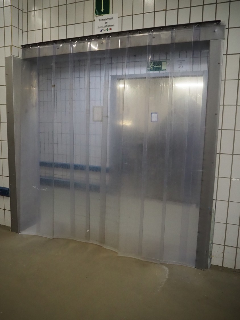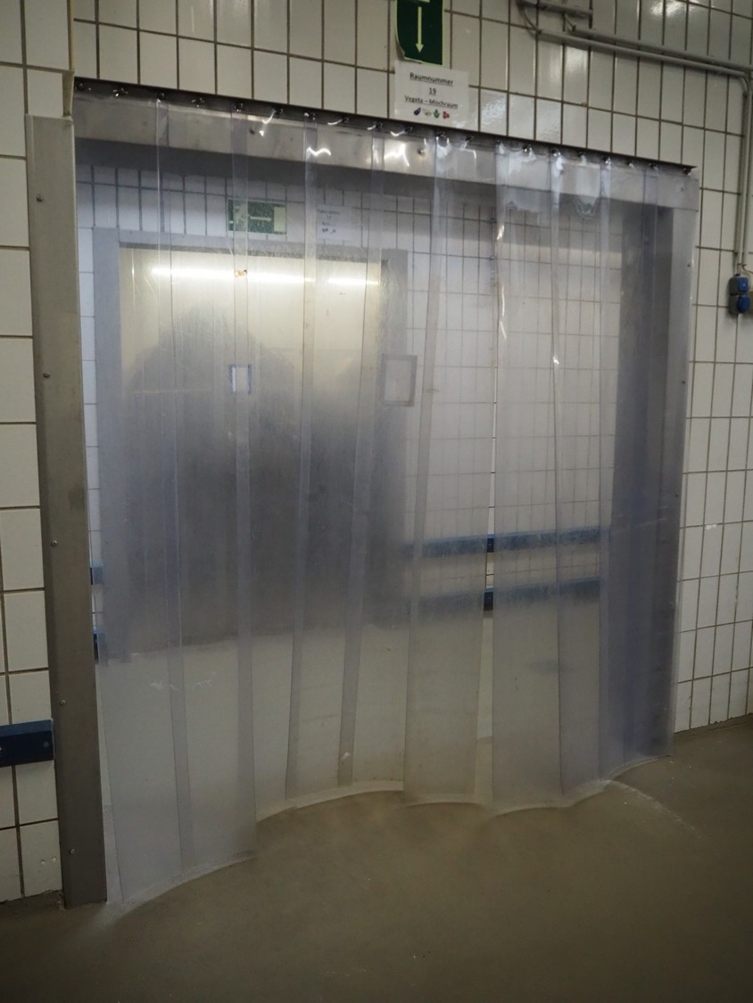 Plastic curtains, dimensions: 2400 mm x 2600 mm.