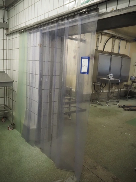 Plastic curtains, dimensions: 2000 mm x 2050 mm. Including s/s sliding rails, length rails: 3850 mm.