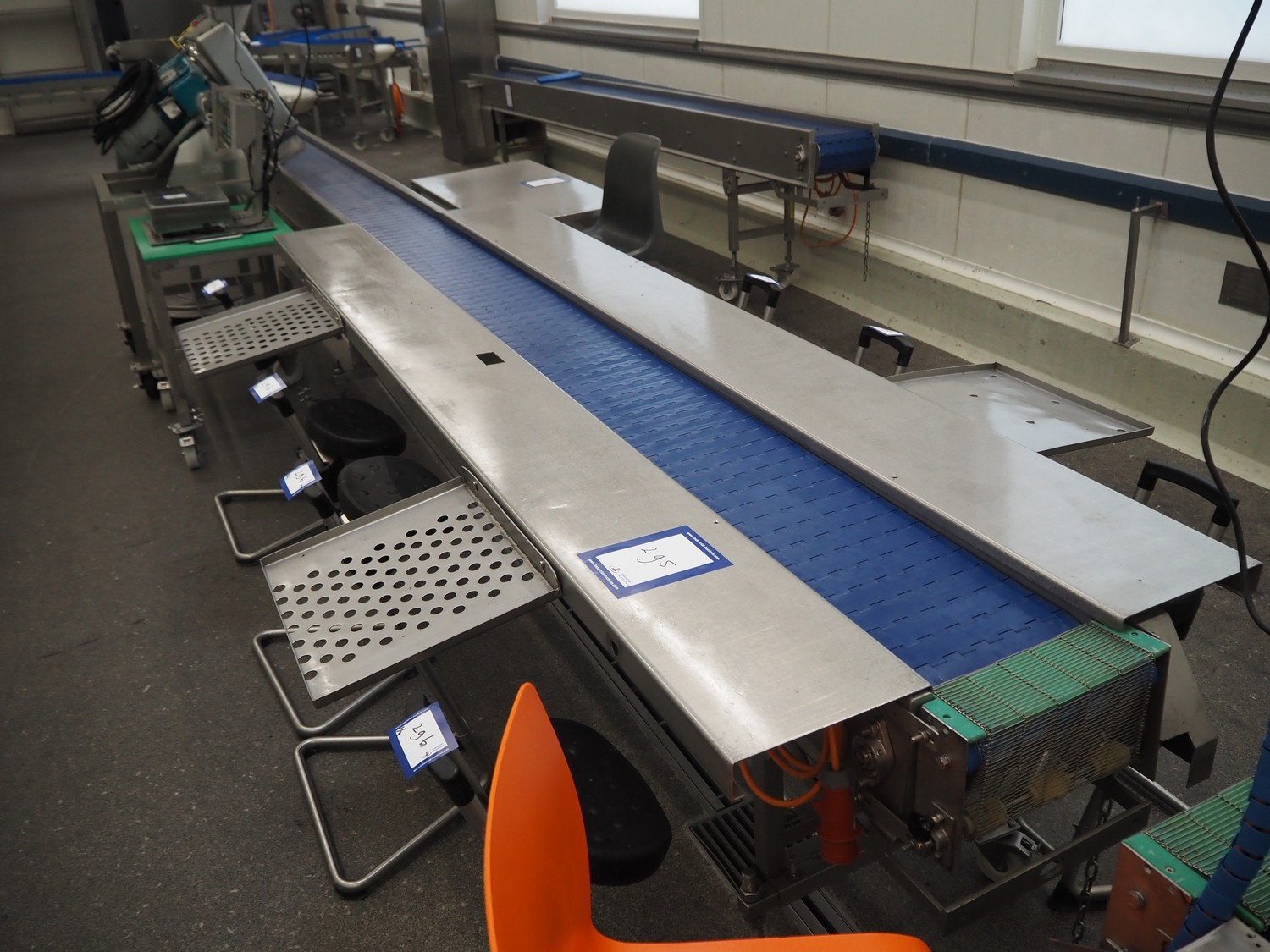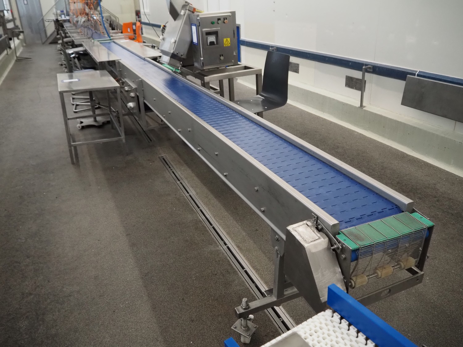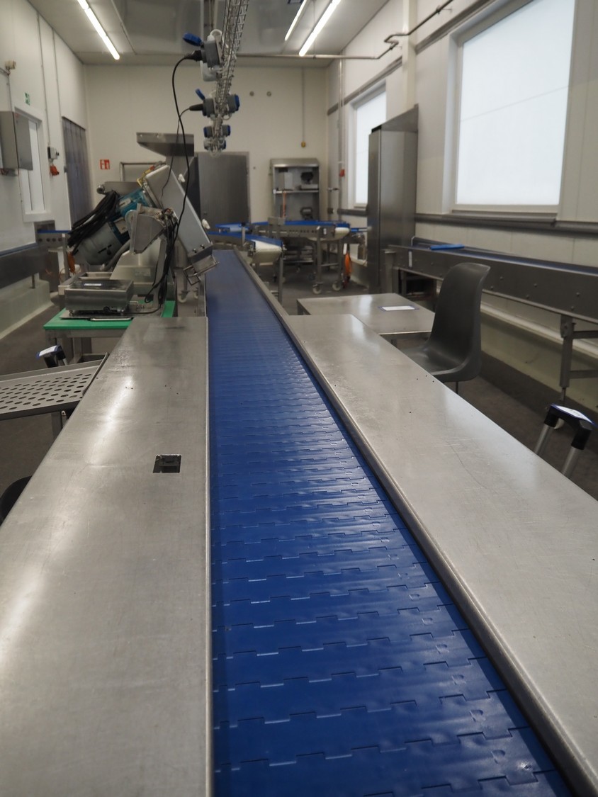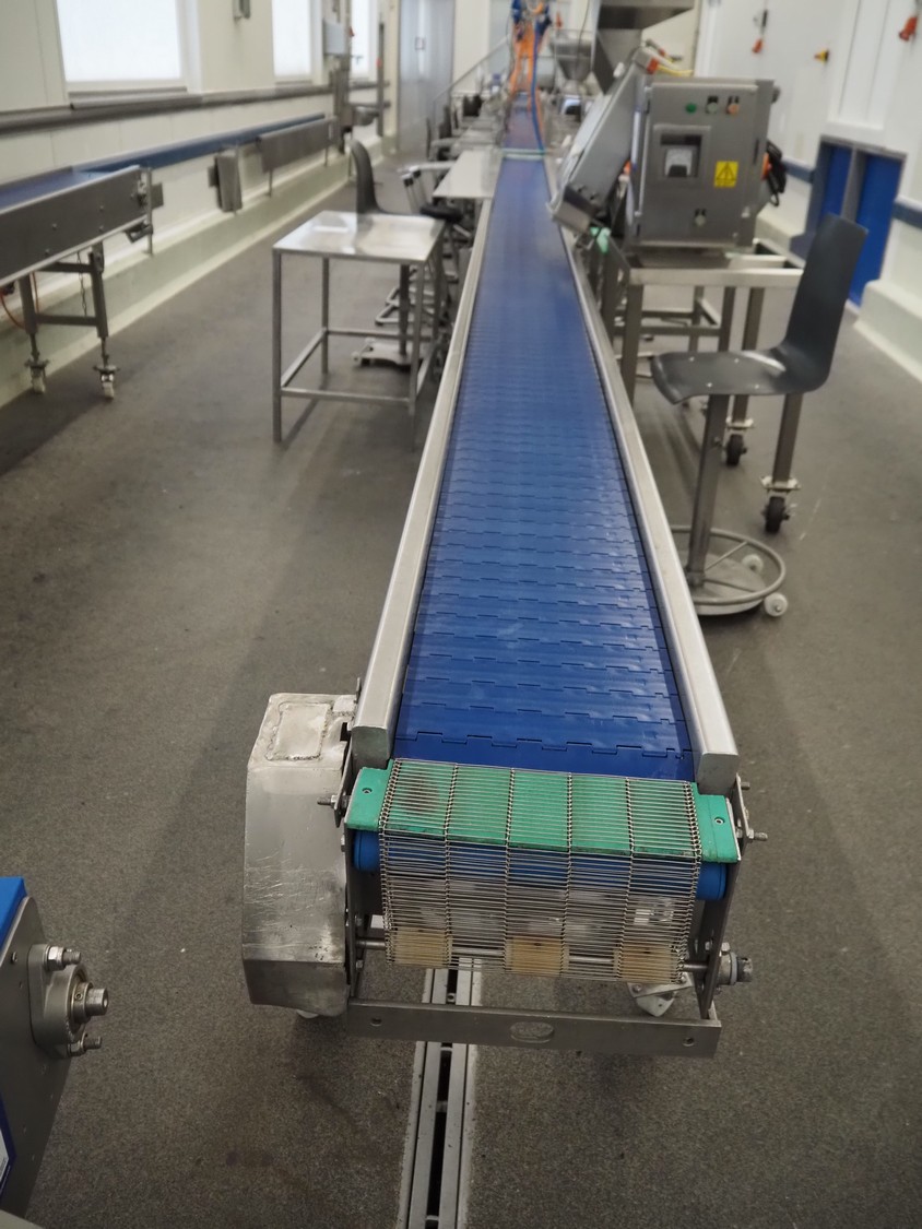 Sorting belt, s/s frame, plastic belt, belt width: 300 mm, total dimensions: 7700 mm x 1700 mm x 900 mm.