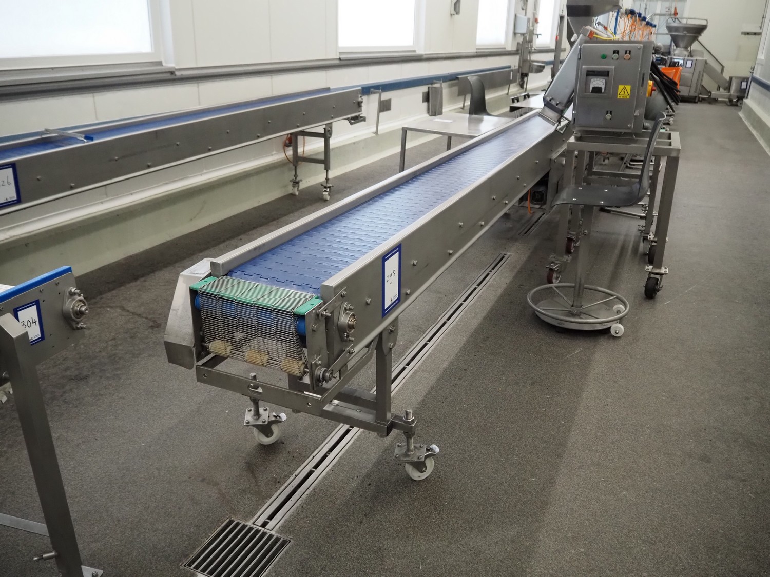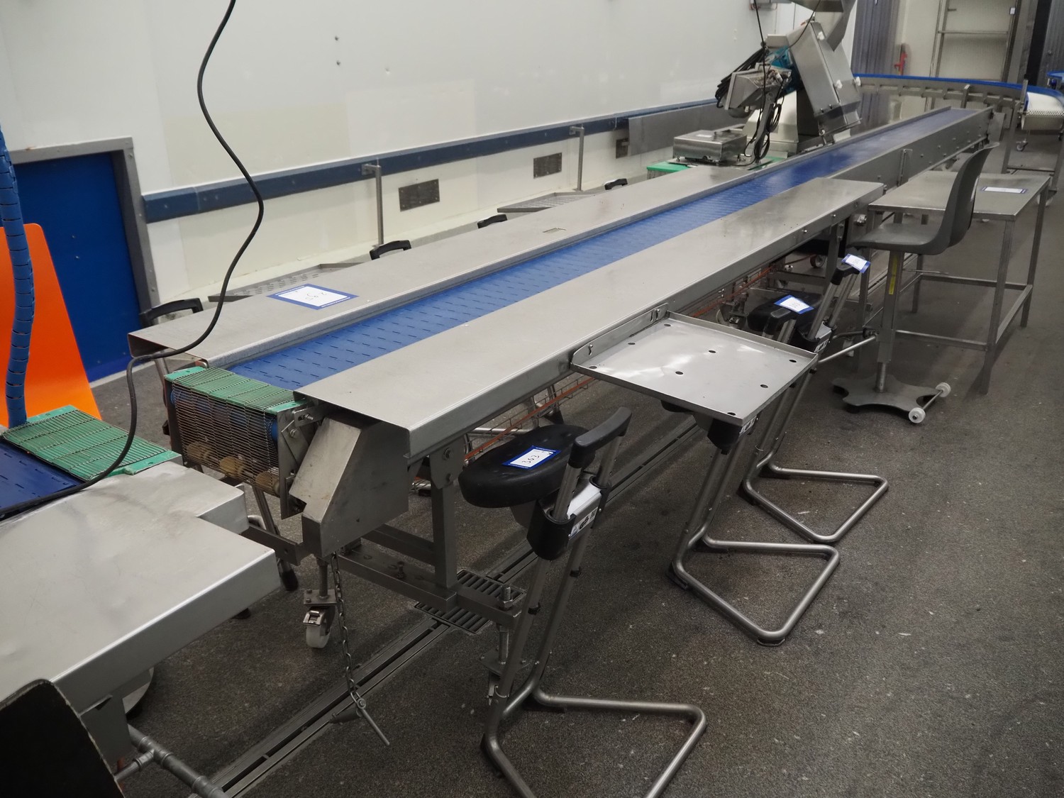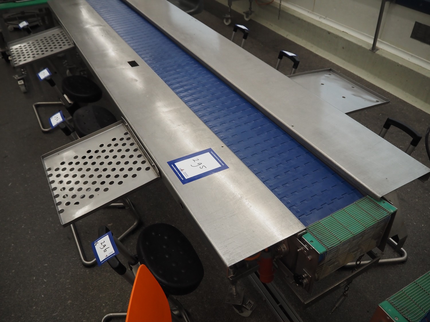 Sorting belt, s/s frame, plastic belt, belt width: 300 mm, total dimensions: 7700 mm x 1700 mm x 900 mm.