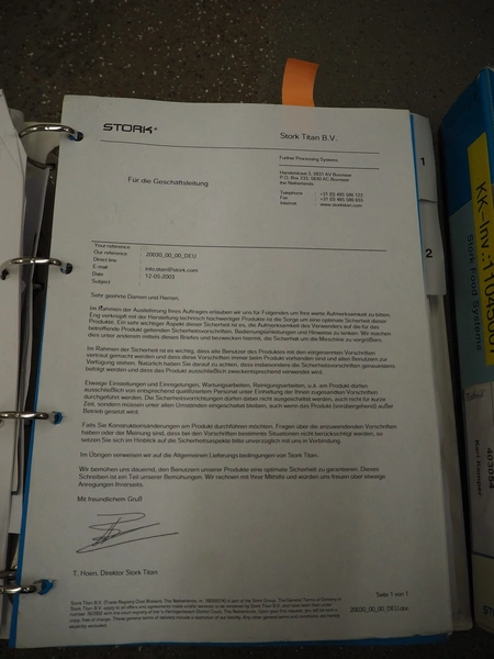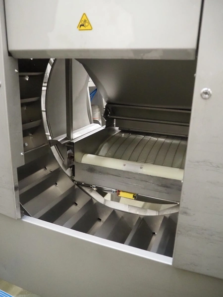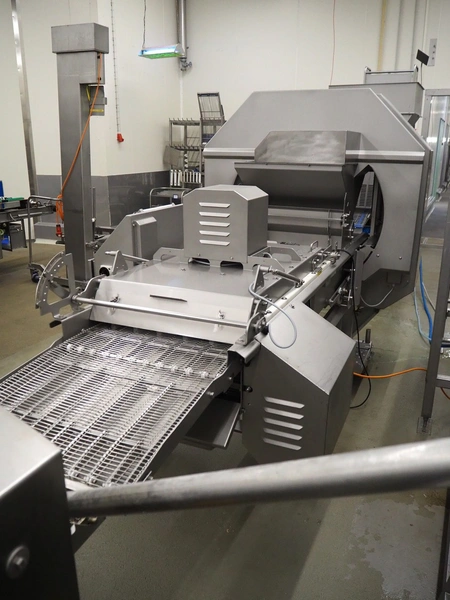 Stork Titan B.V. mobile breading machine, machine: RotoCrumb, model: TRC 630 TD 2112, type: 4780626AA, serial number: 10061097, year of construction: 2007, s/s mesh belt, belt width: 630 mm, total dimensions: 3600 mm x 1600 mm x 2100 mm.