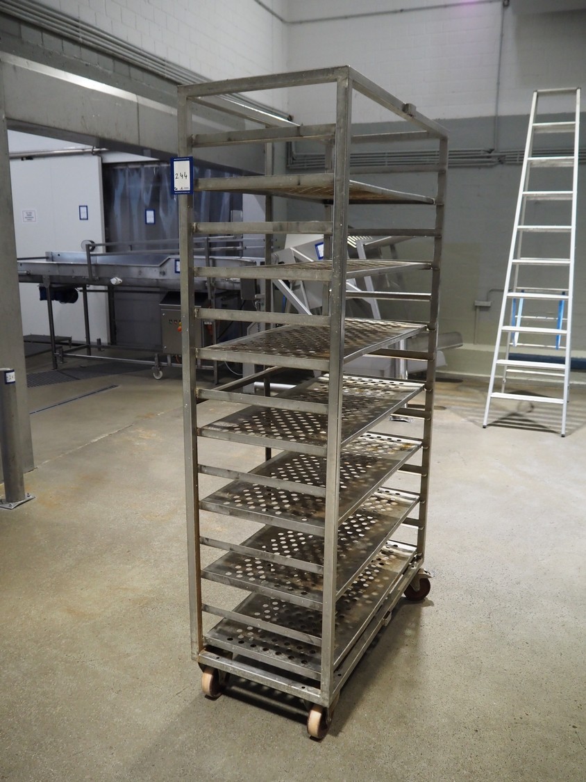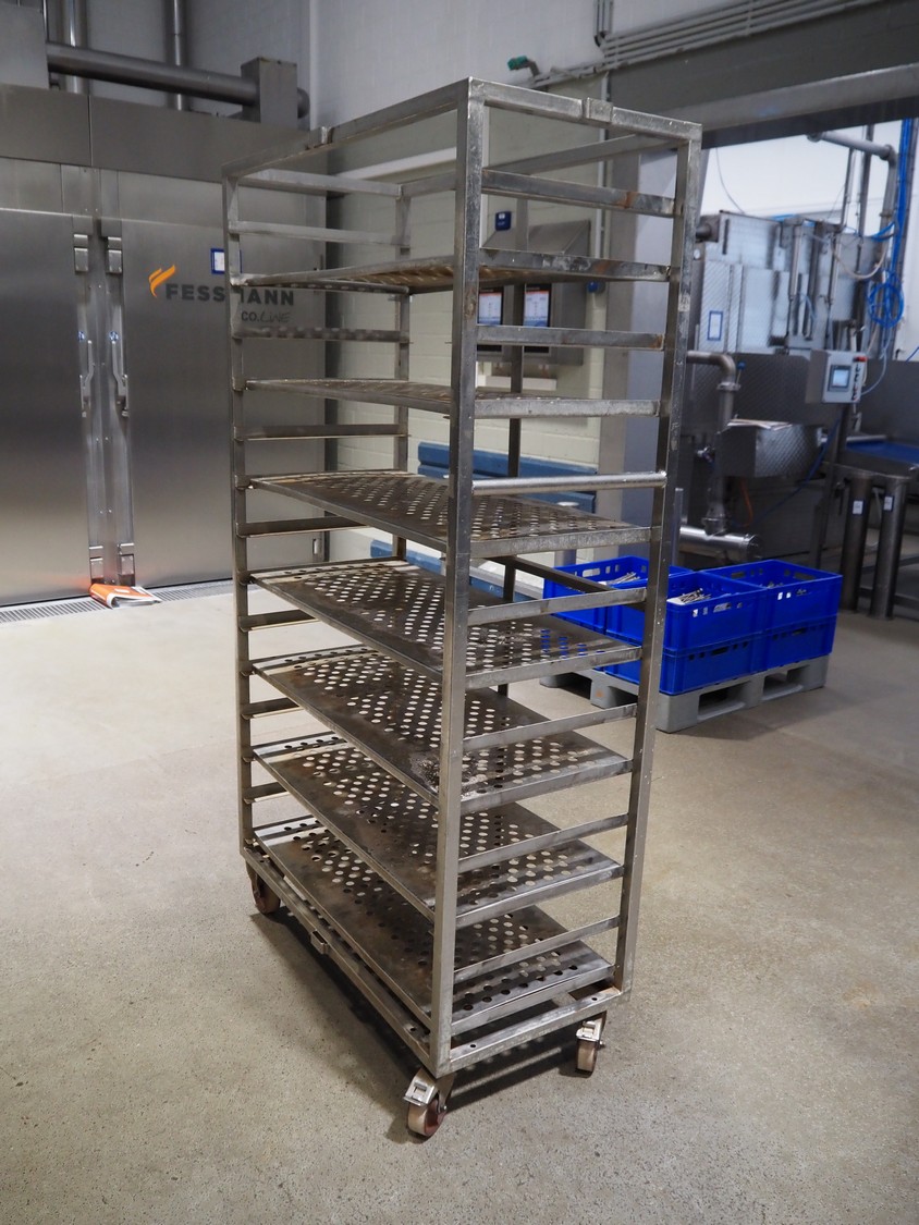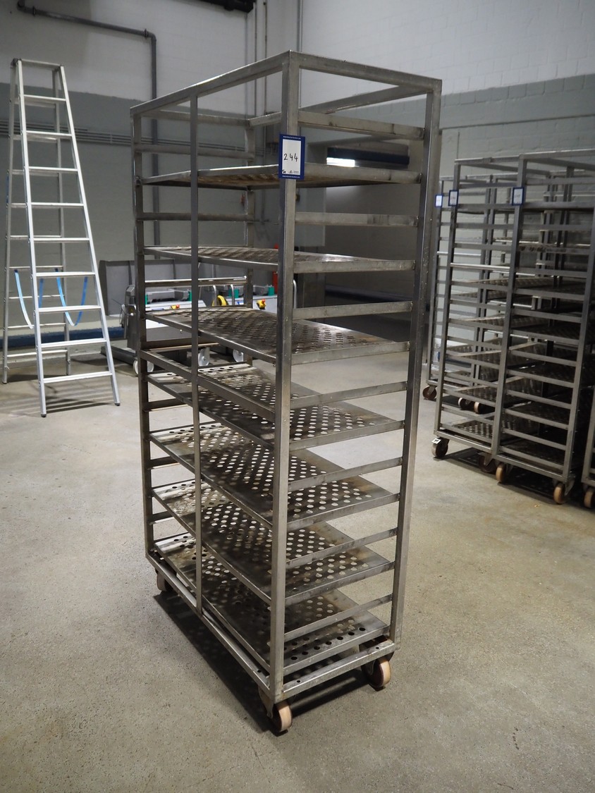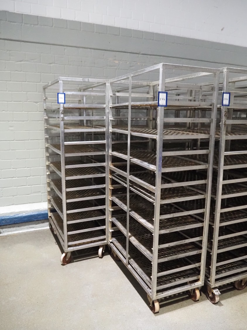 5 s/s cooking trolleys used for cabbage, 14 floors each, dimensions: (5x) 1040 mm x 500 mm x 1900 mm.