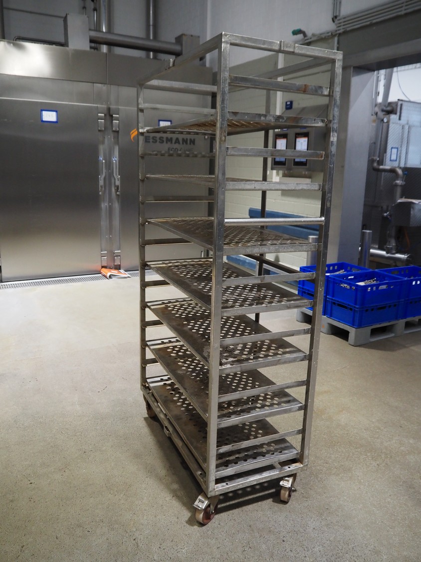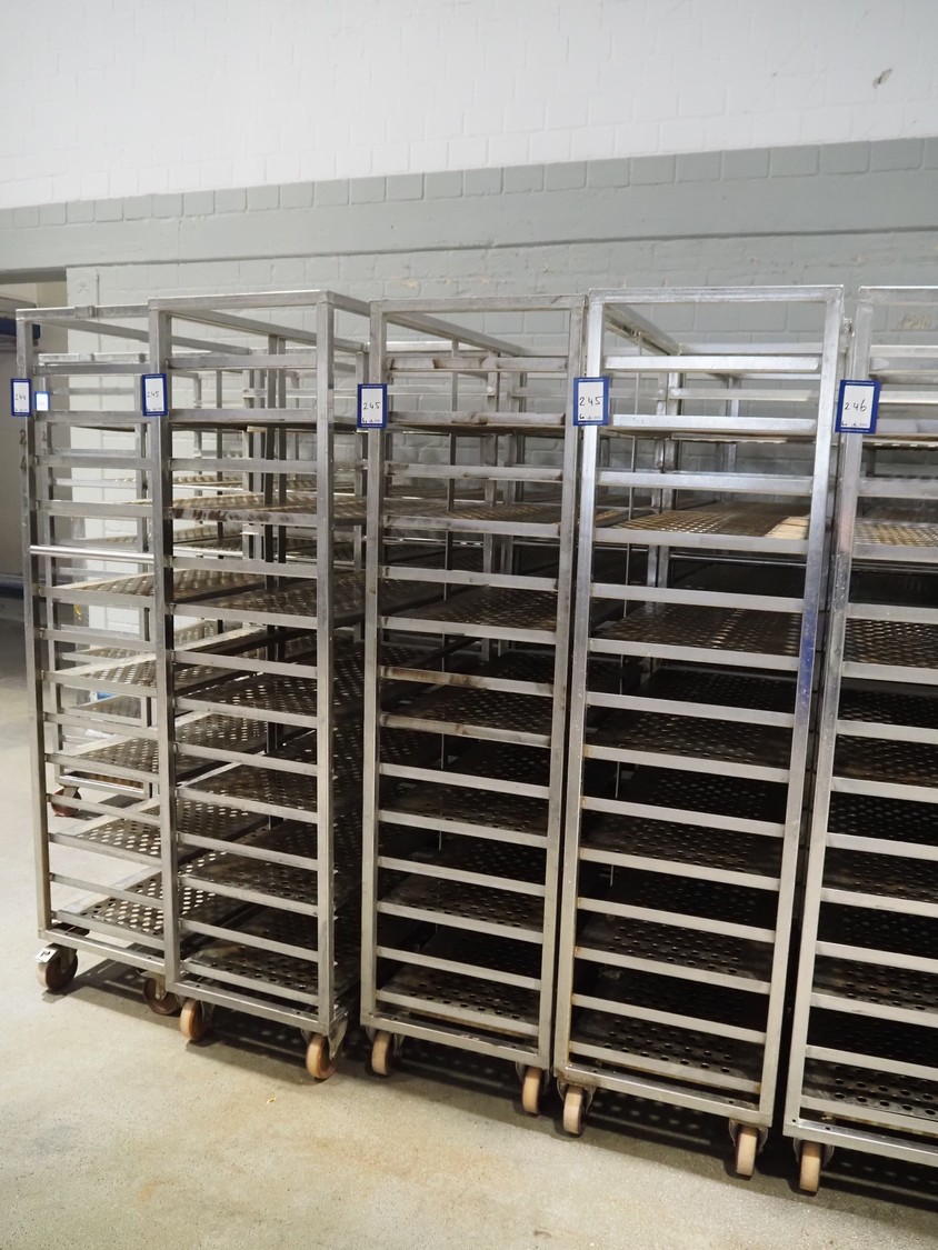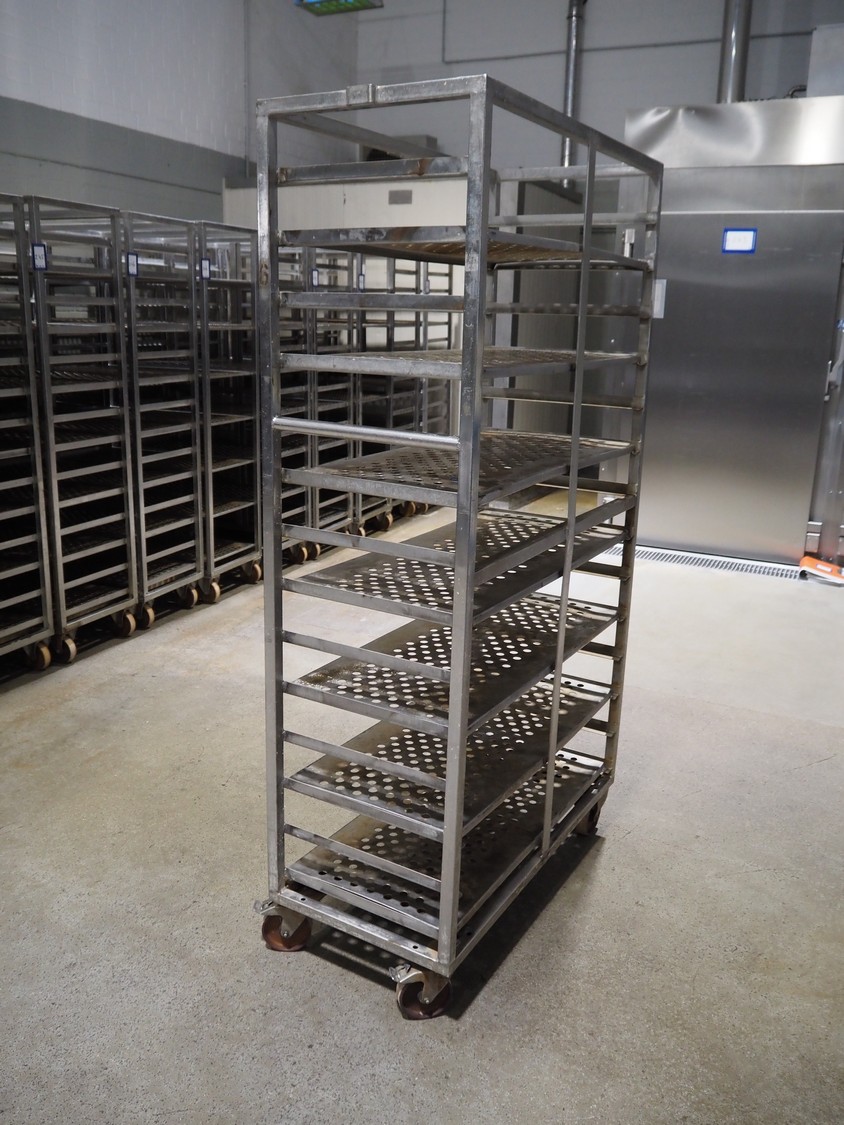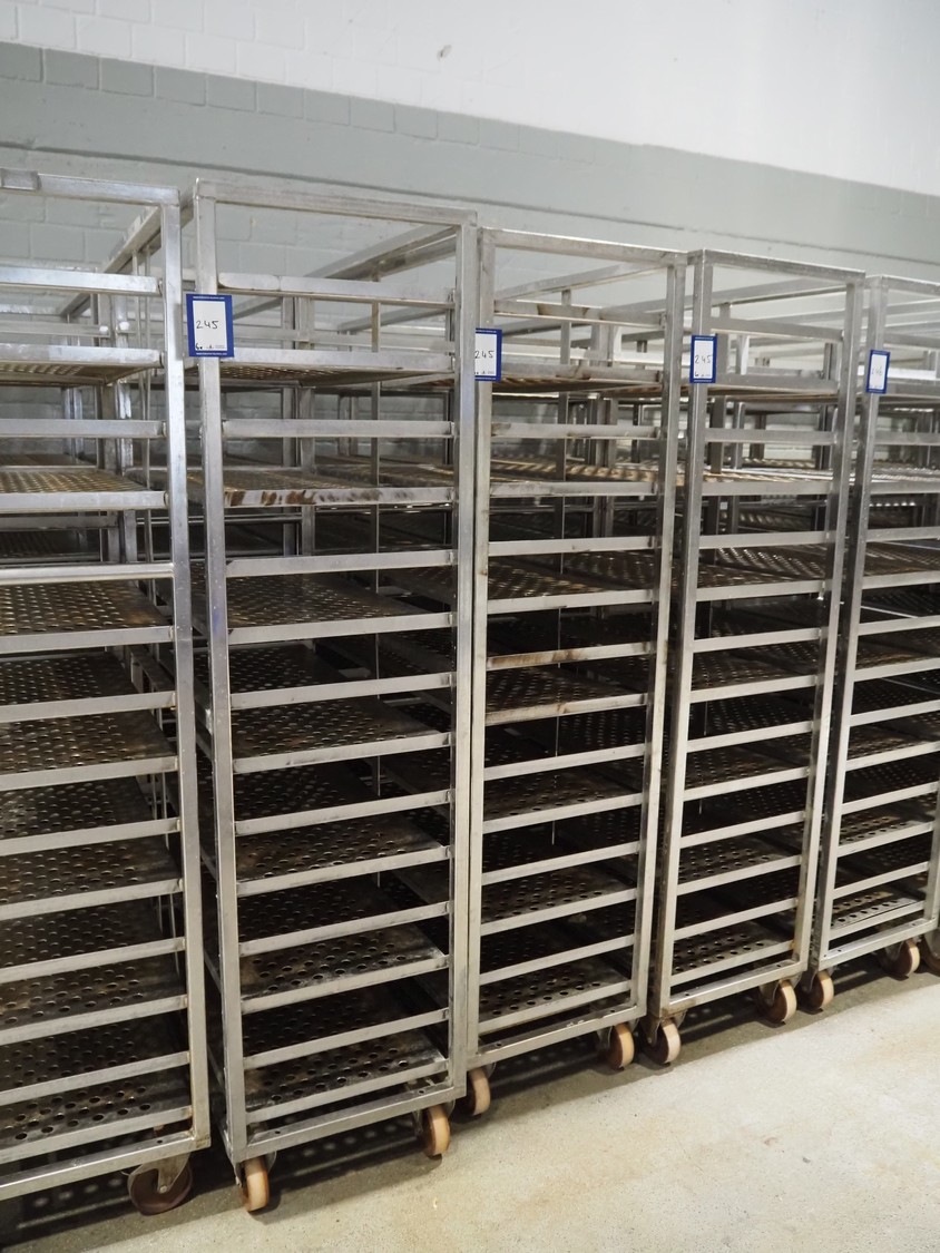 6 s/s cooking trolleys used for cabbage, 14 floors each, dimensions: (6x) 1040 mm x 500 mm x 1900 mm.