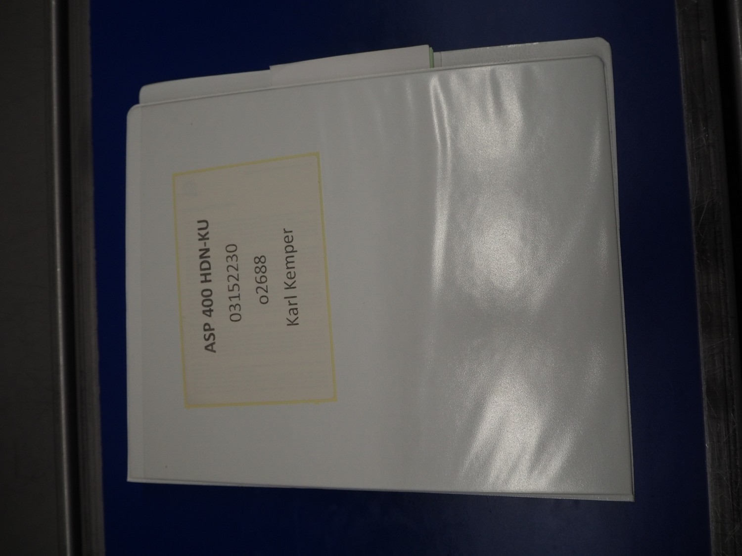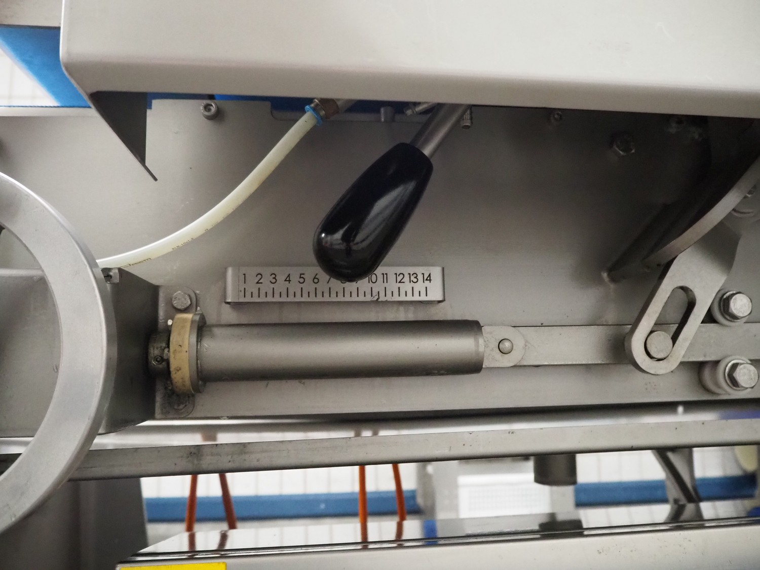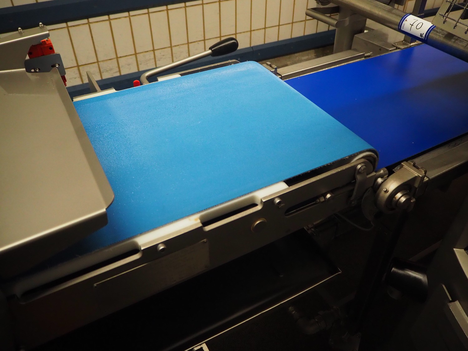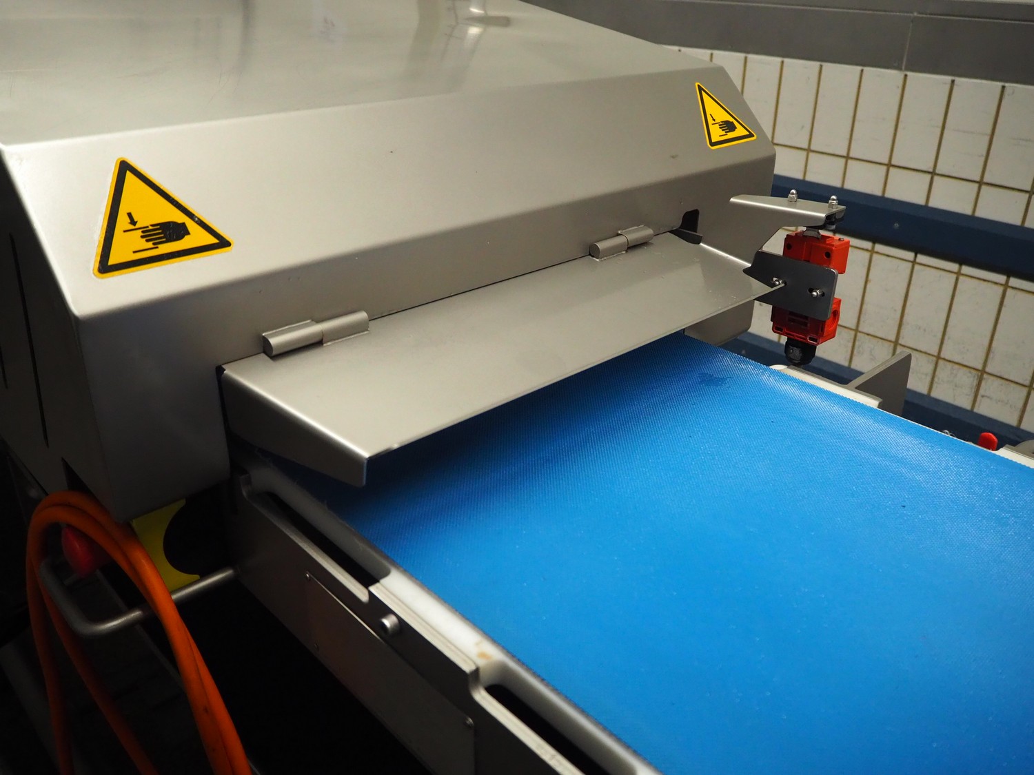 Alco Food Machines GmbH mobile flattener, type: ASP 400 HDN, serial number: 03152230, year of construction: 2019, 400 V, 50 Hz, 16 A, 4 kW, weight: 570 kg, s/s mesh belt, belt width: 400 mm, plastic belt, belt width: 410 mm, total dimensions: 2200 mm x 800 mm x 1450 mm.