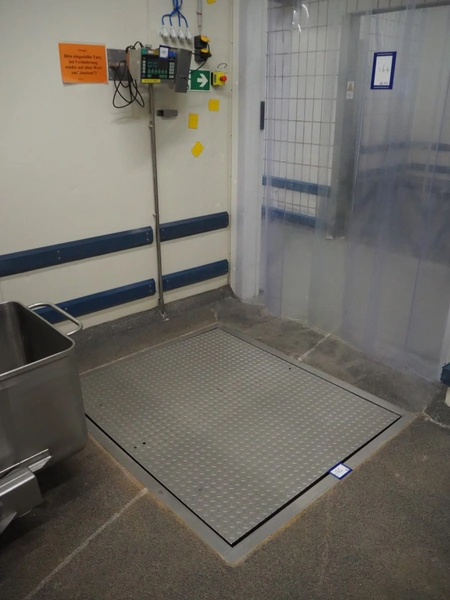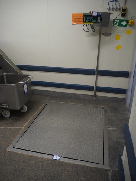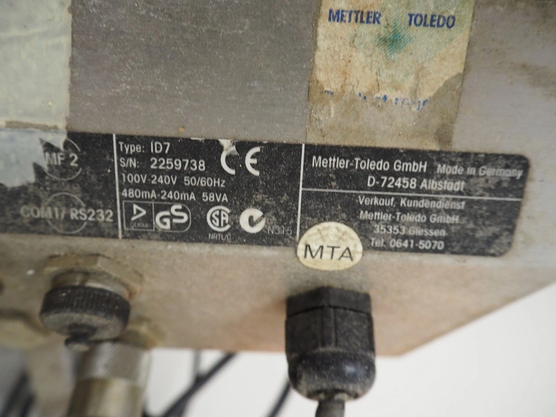 Mettler Toledo GmbH floor weighing scale with indicator, type indicator: ID7, serial number: 2259738, 100-240 V, 50/60 Hz, 480 mA, dimensions scale: 1500 mm x 1250 mm, dimensions indicator: 340 mm x 150 mm x 200 mm. S/s outer frame of floor weighing scale is not included.