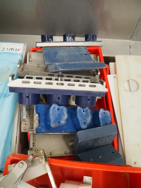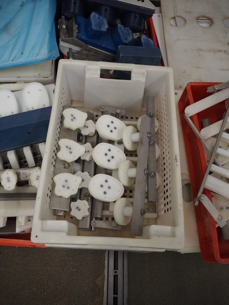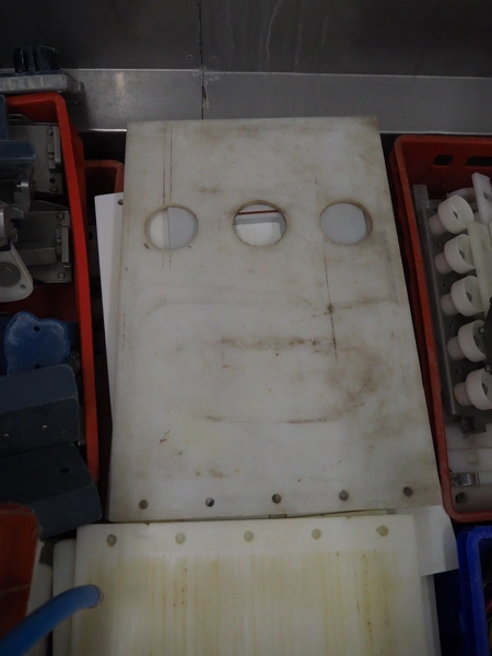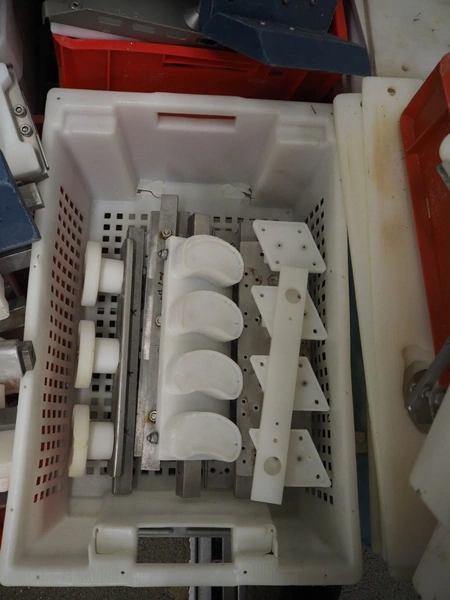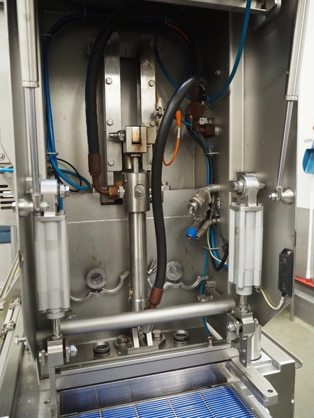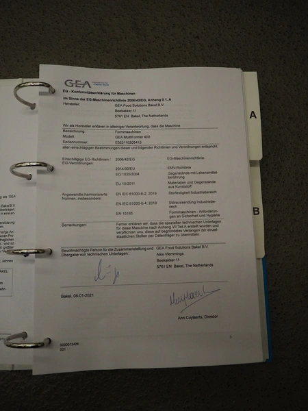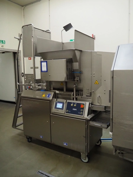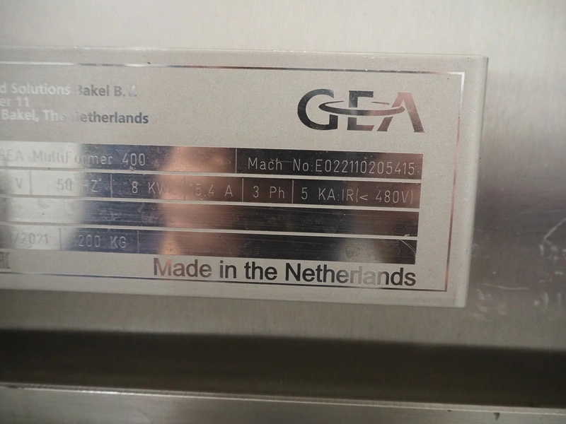 GEA Food Solutions Bakel B.V. forming machine, type: GEA MultiFormer 400, machine number: E022110205415, year of construction: 2021, 380-415 V, 3 Ph, 50 Hz, 15.4 A, 8 kW, s/s mesh belt, belt width: 400 mm, dimensions forming machine: 3100 mm x 1000 mm x 2700 mm, including 2 pallets with forming plates, s/s rack with 2 additional outfeed belts, belt widths: 400 mm, dimensions rack: 1350 mm x 600 mm x 2100 mm, GEA tool trolley, dimensions: 1200 mm x 700 mm x 950 mm.