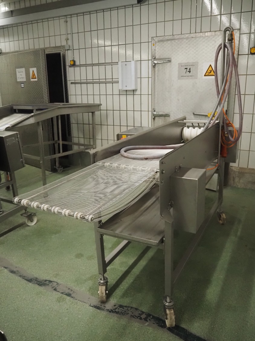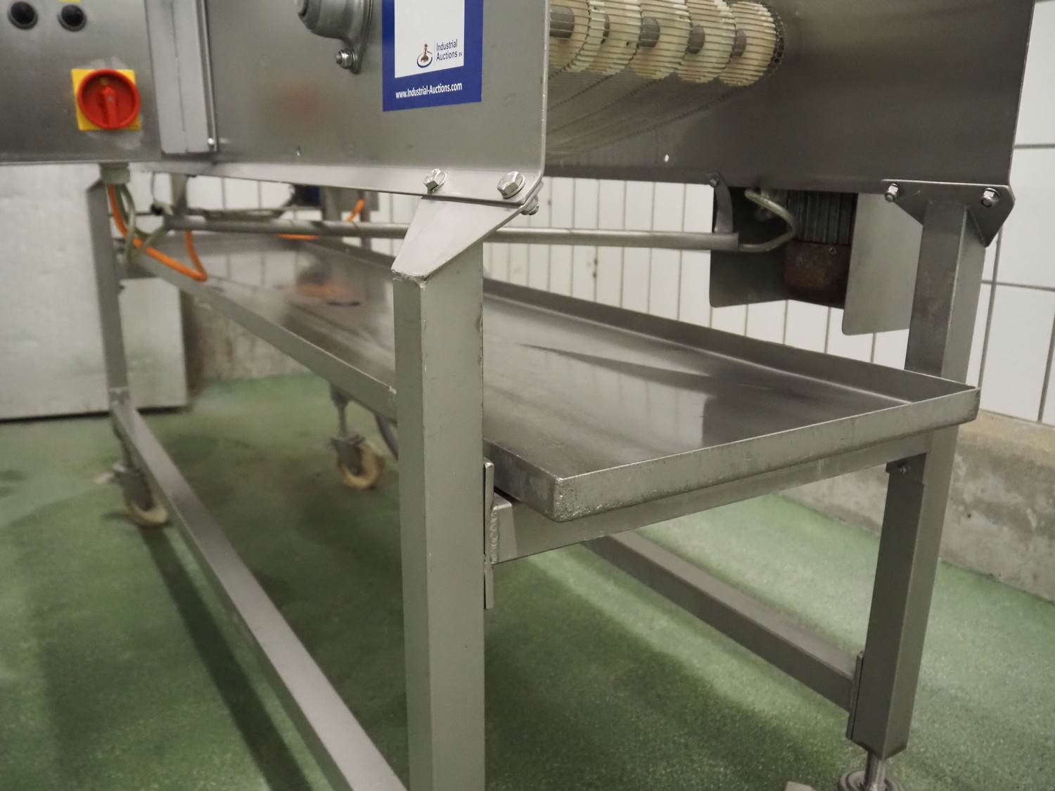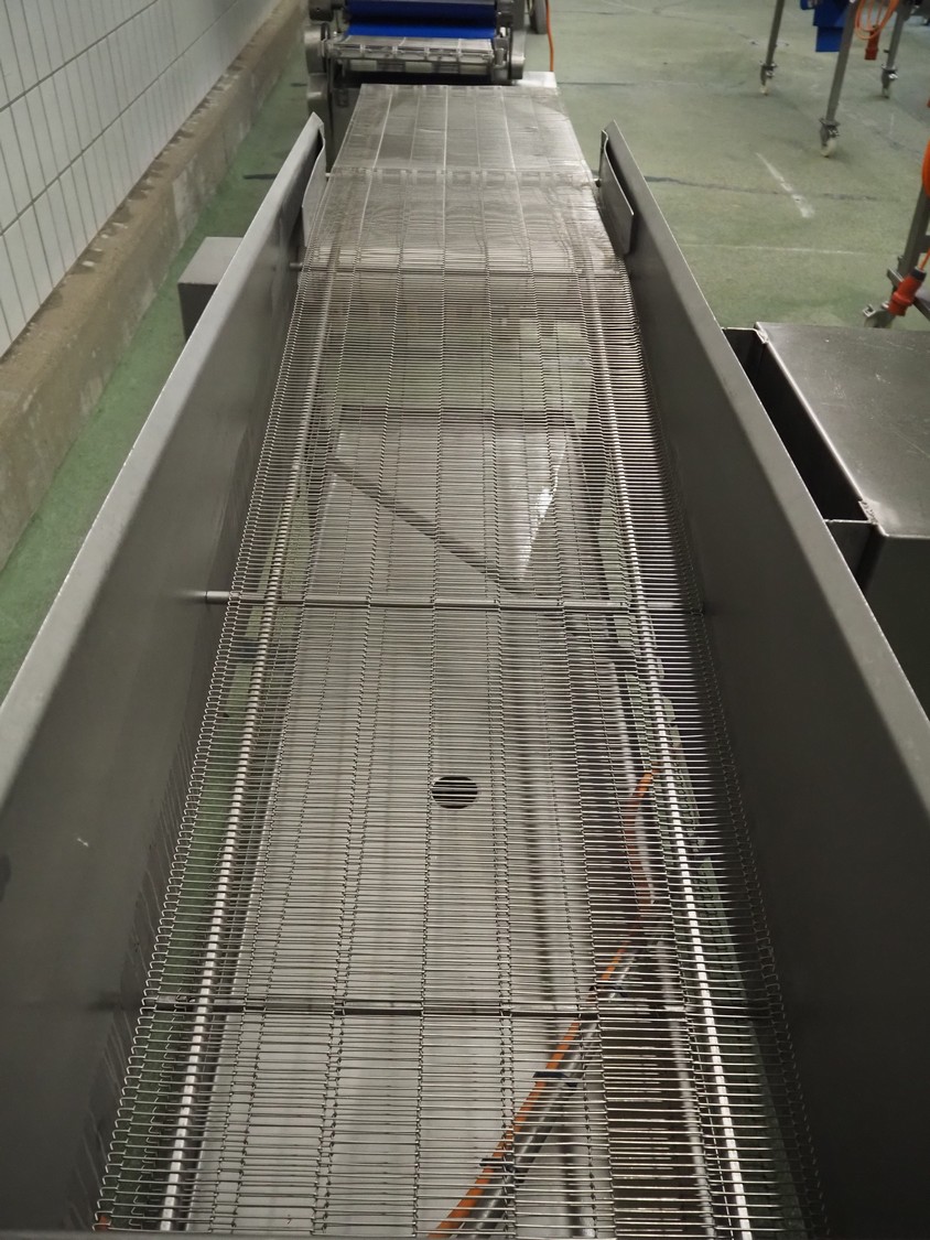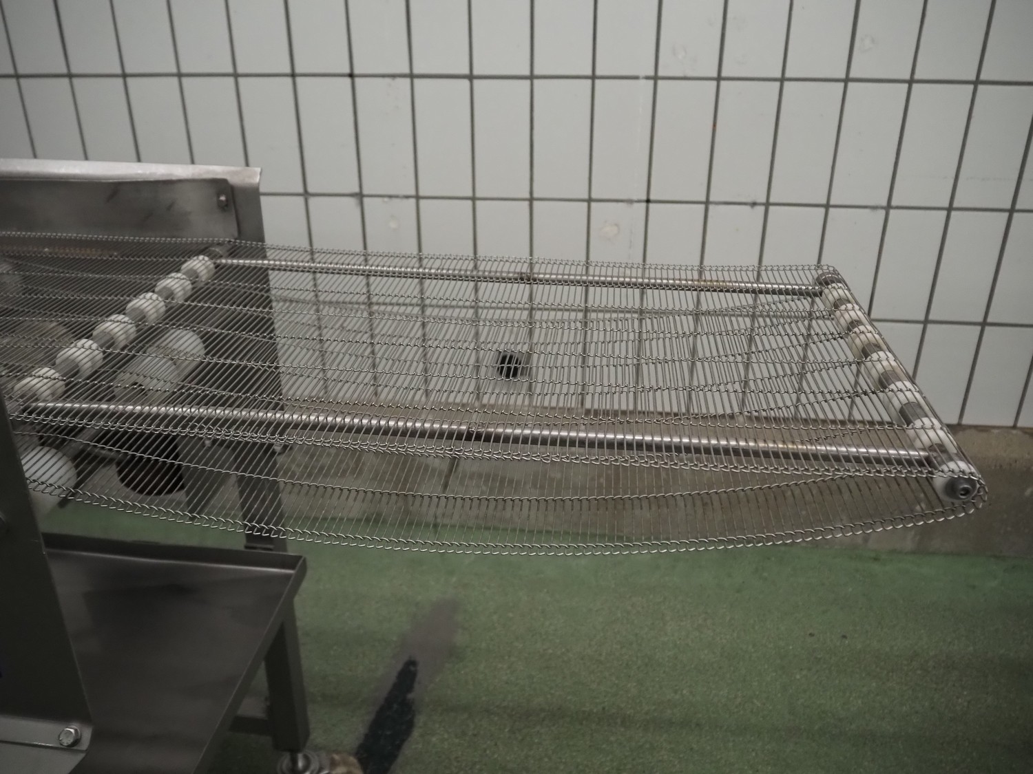 Meat ball roller used for 400 MM forming machine, s/s mesh belt, belt width: 400 mm, total dimensions: 2500 mm x 770 mm x 1930 mm.
