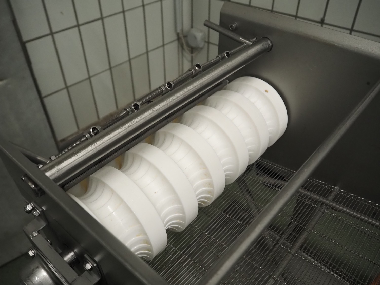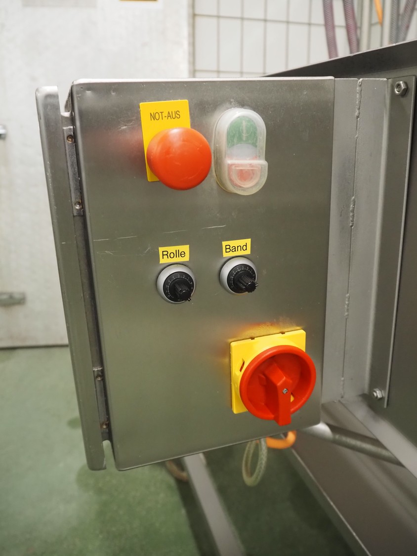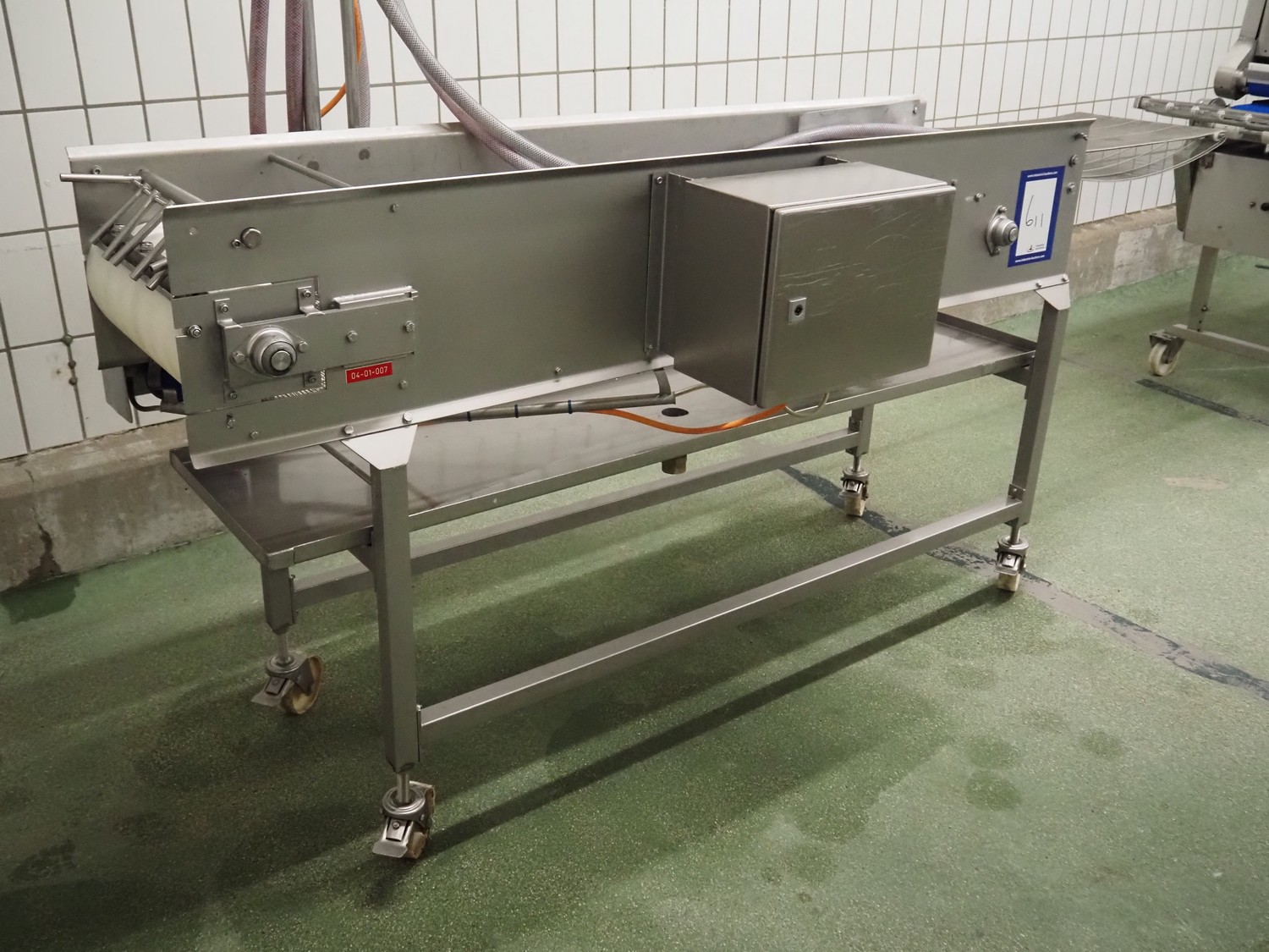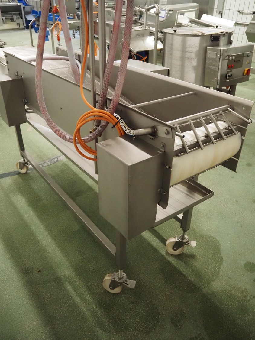 Meat ball roller used for 400 MM forming machine, s/s mesh belt, belt width: 400 mm, total dimensions: 2500 mm x 770 mm x 1930 mm.