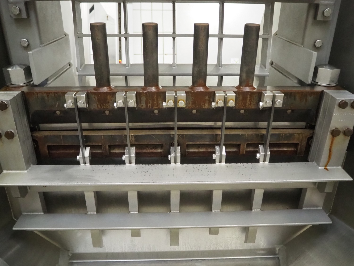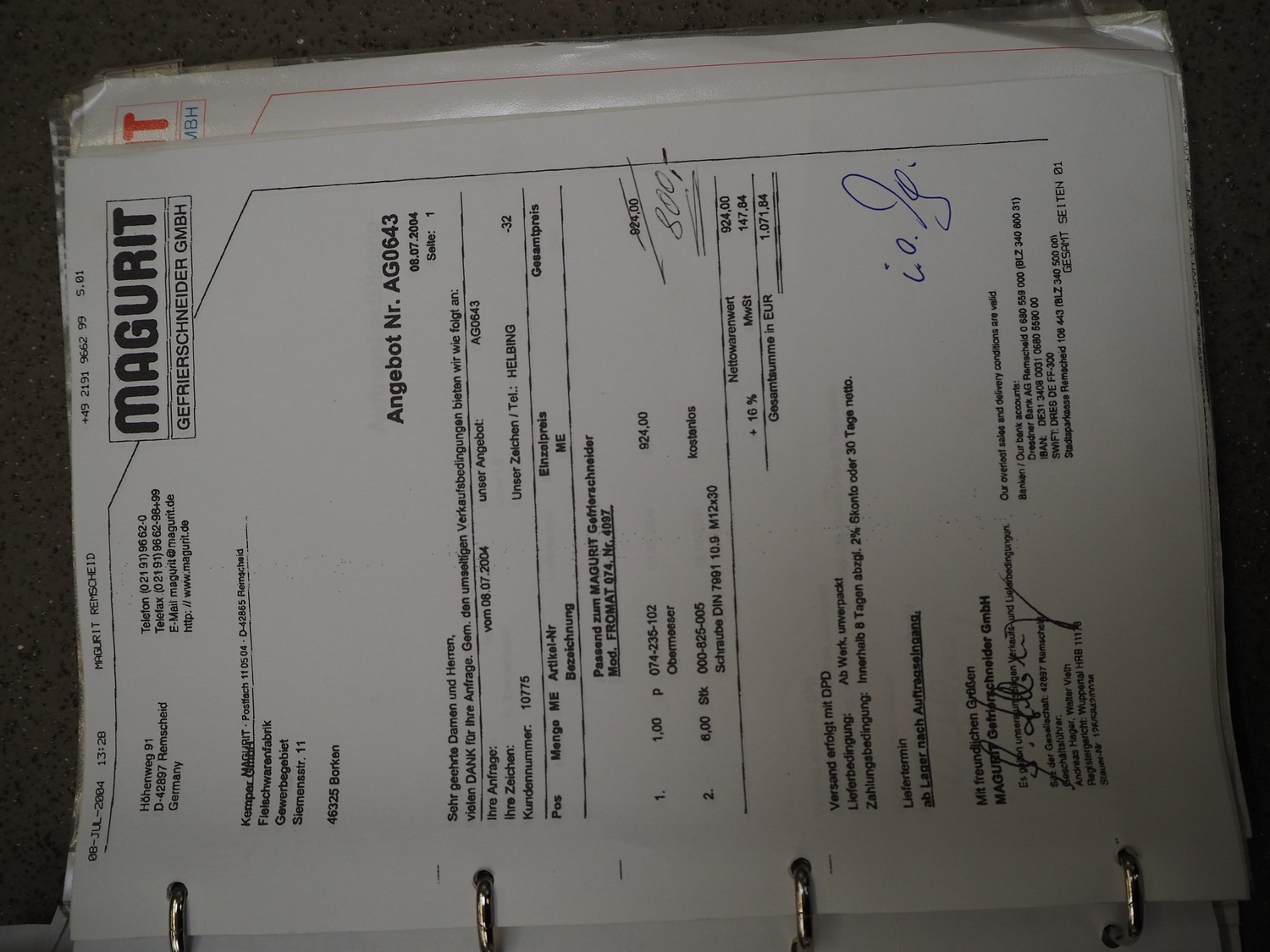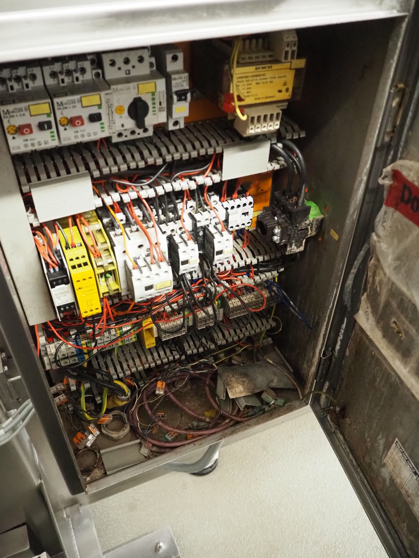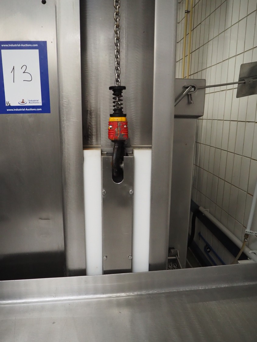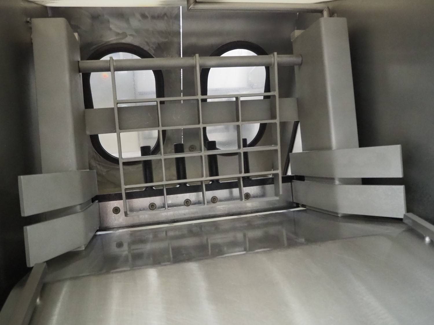 Magurit GmbH frozen block cutter with lifting platform, model: FROMAT, type: 074-012, machine number: 4097, year of construction: 1995, 380 V, 10 kW, maximum block size: 670 mm x 600 mm x 550 mm, working width: 730 mm, total dimensions frozen block cutter: 1800 mm x 1050 mm x 1900 mm, total dimensions lifting platform: 1200 mm x 1100 mm x 2610 mm.
