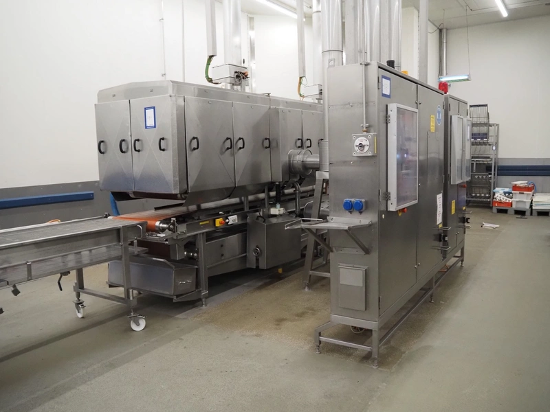 Koppens Machinefabriek B.V. teflon belt grill, type: BG 3600 / 600, machine number: 550, year of construction: 1994, 380 V, 3 Ph, 50 Hz, 48 A, 22 kW, weight: 4140 kg, maximum capacity elements: 6 x 27 kW, heating: thermic oil, oil volume: 120 dm³, teflon belt, belt width: 643 mm, total dimensions: 6600 mm x 1700 mm x 2650 mm, switch cabinet, dimensions: 1070 mm x 450 mm x 2100 mm, valve station, dimensions: 1600 mm x 900 mm x 3000 mm, thermic oil station with Allweiler thermic oil pump, type: NBT 32-200, dimensions: 1300 mm x 800 mm x 2700 mm.