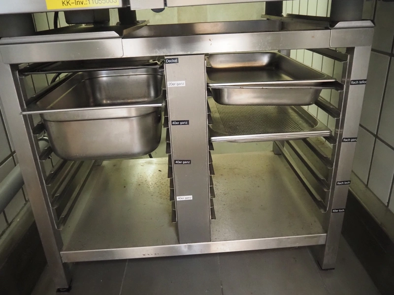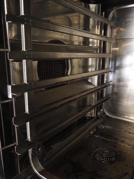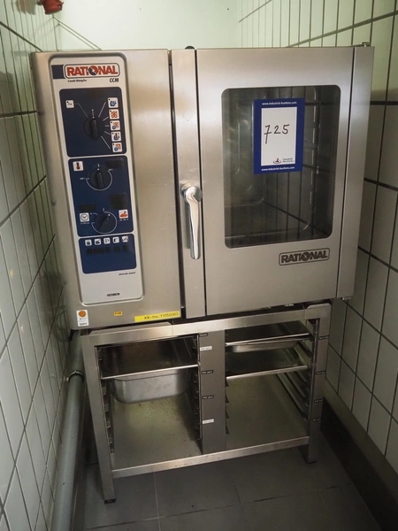 Rational combi steamer, 6 floors, floor dimensions: 540 mm x 330 mm, total dimensions: 900 mm x 760 mm x 1550 mm.