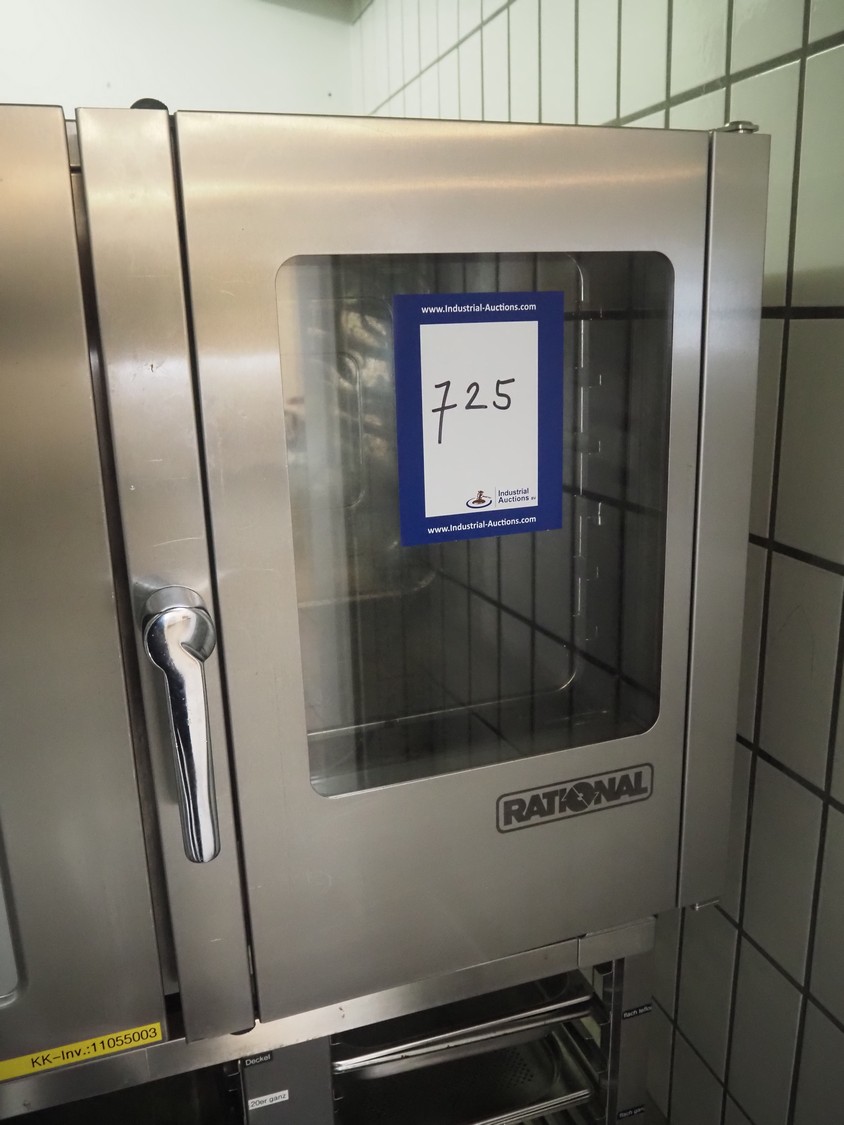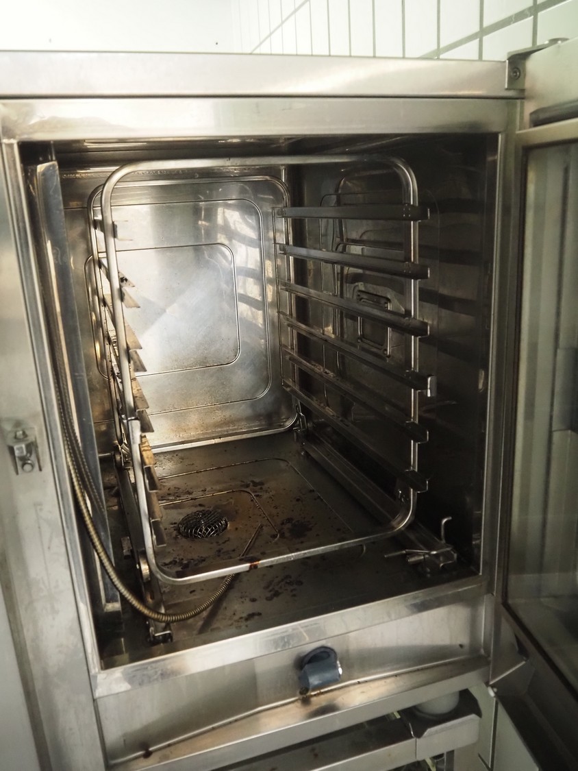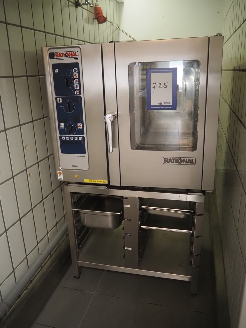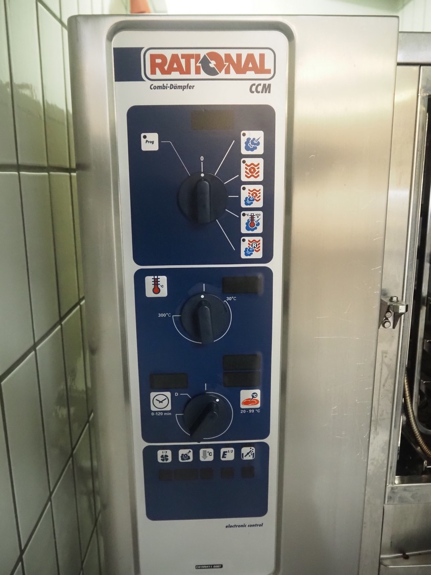 Rational combi steamer, 6 floors, floor dimensions: 540 mm x 330 mm, total dimensions: 900 mm x 760 mm x 1550 mm.