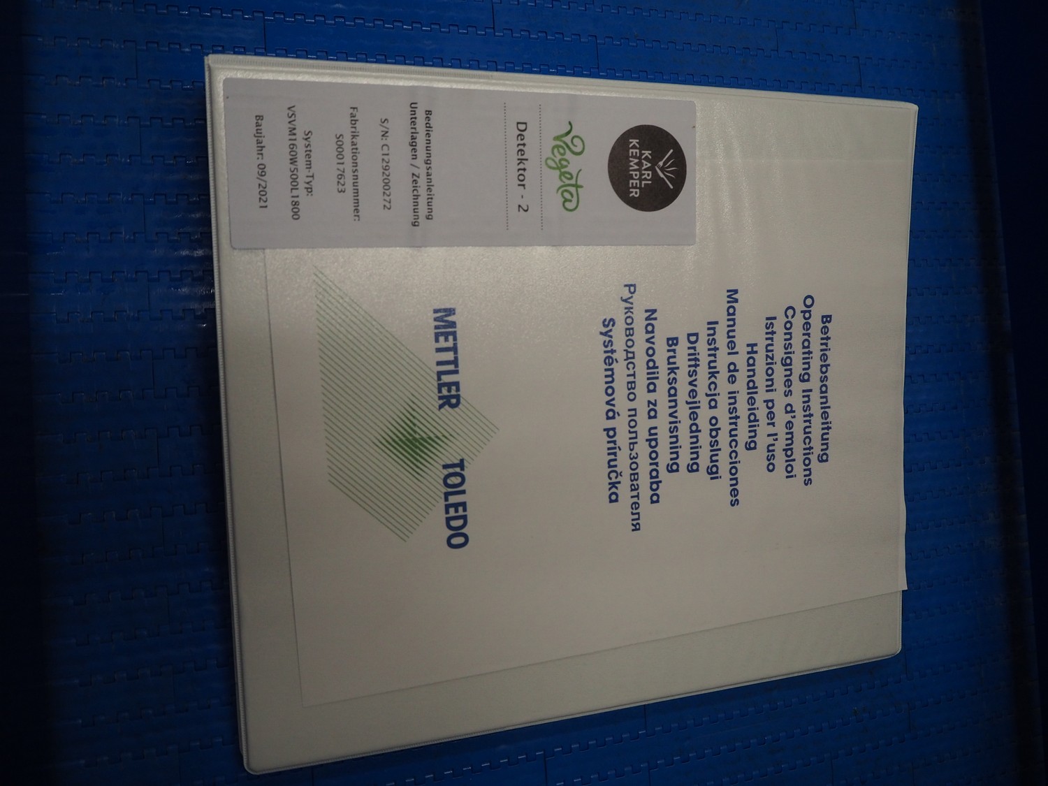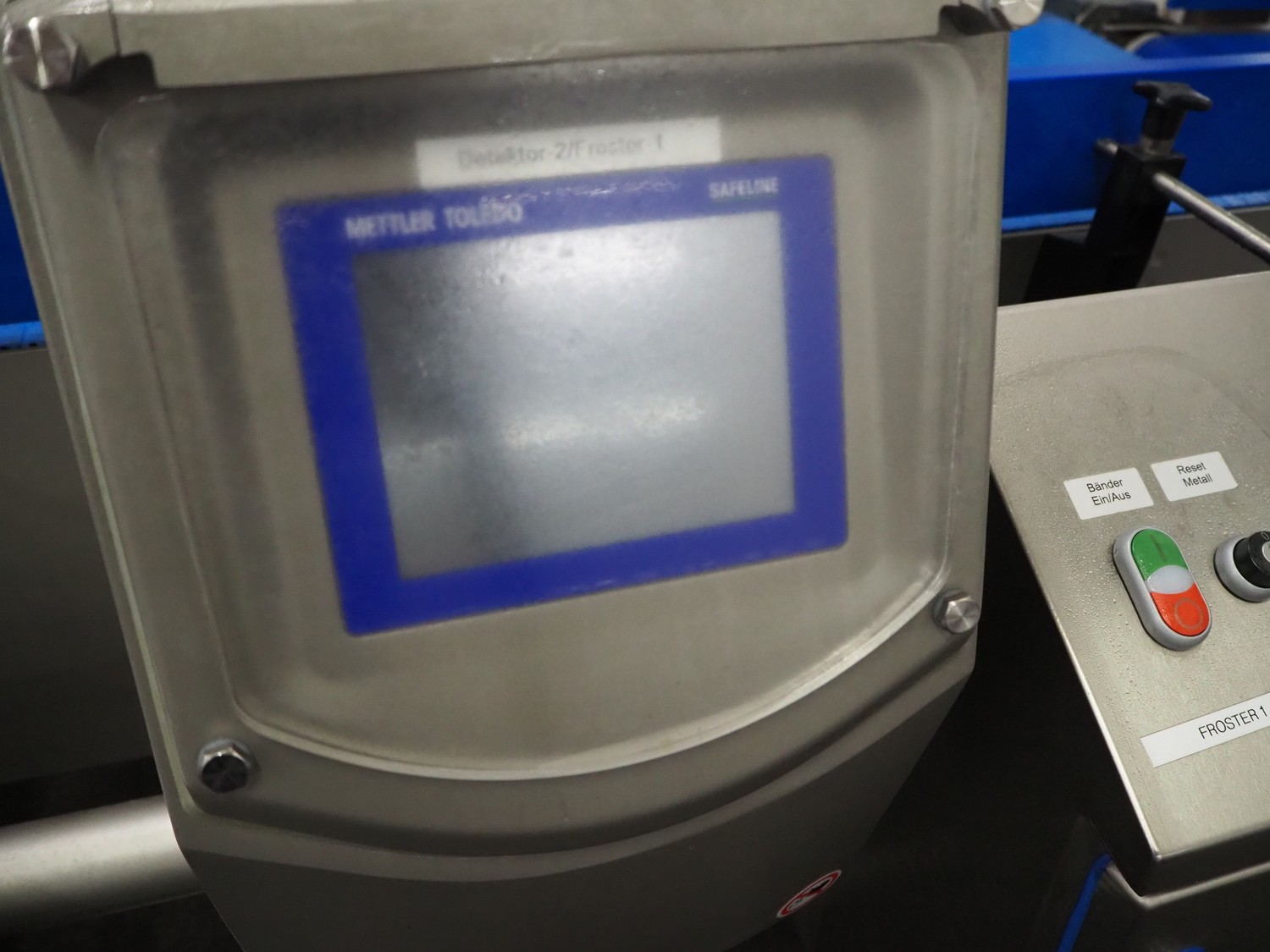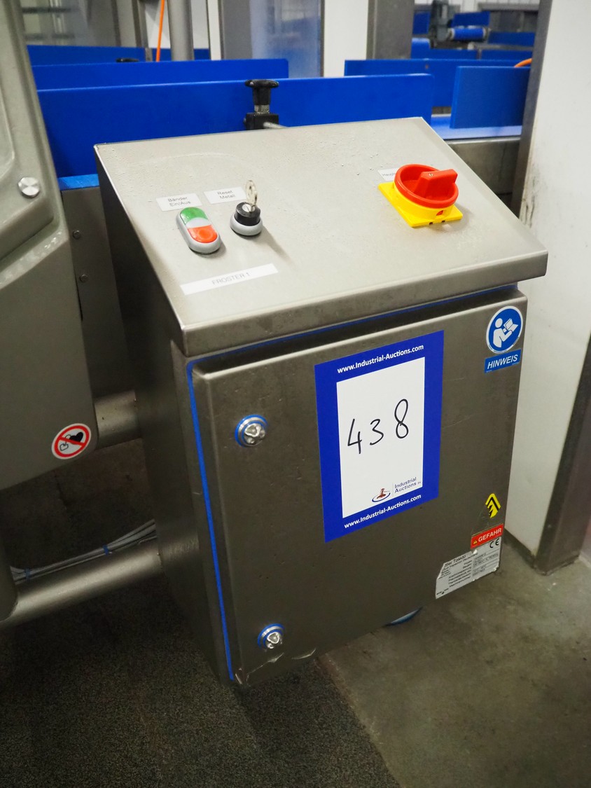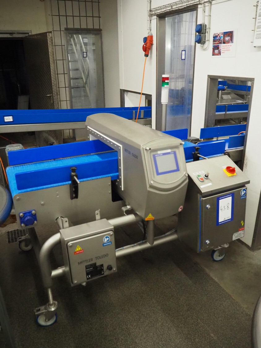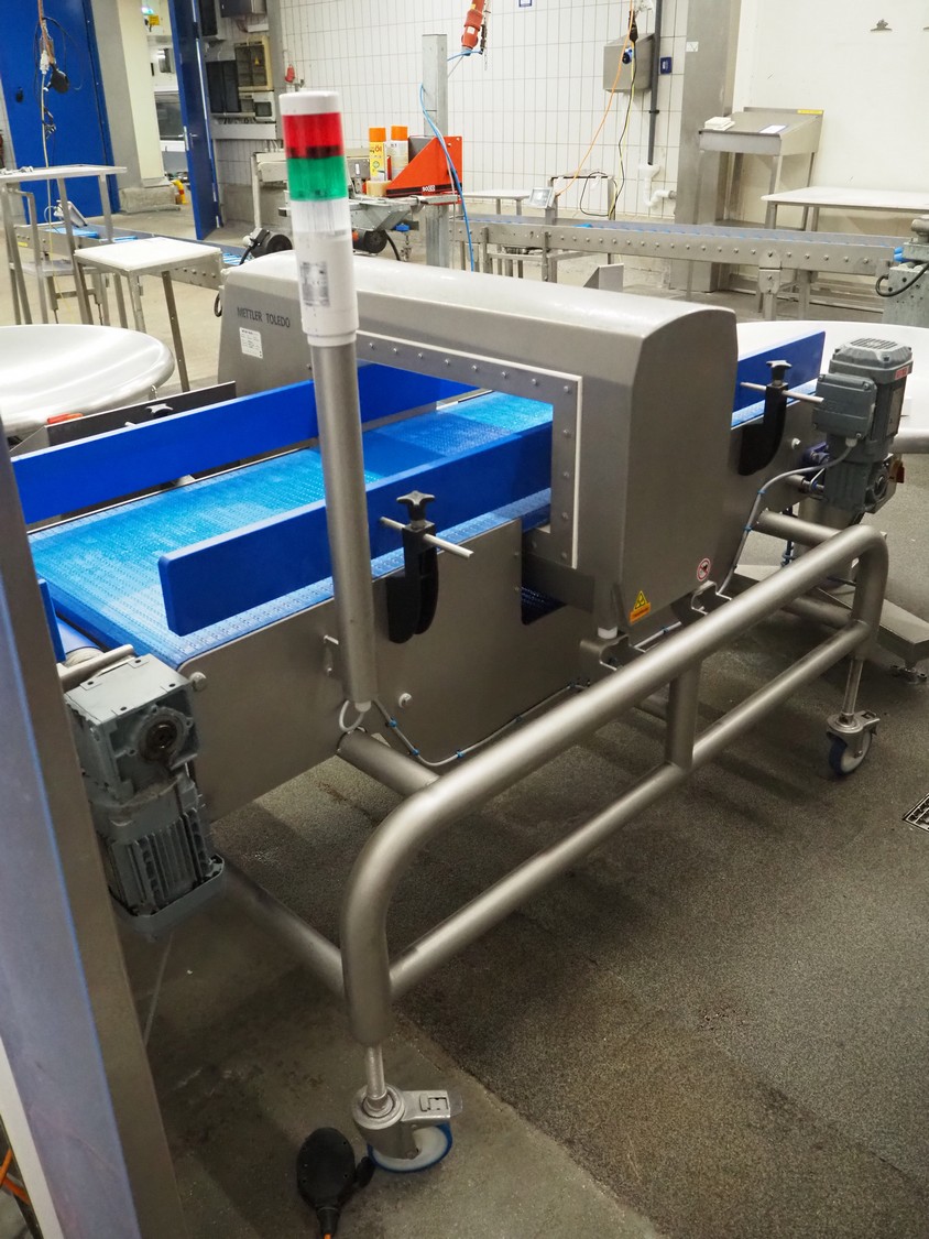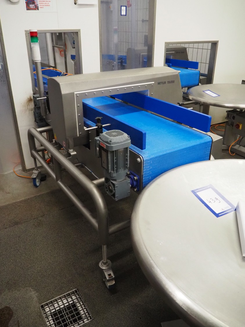 Mettler Toledo GmbH mobile metal detector, type: Metalldetektor, serial number: C129200272, year of construction: 09-2021, plastic belt, belt width: 500 mm, clearance: 550 mm x 170 mm, total dimensions: 1600 mm x 1200 mm x 1430 mm.